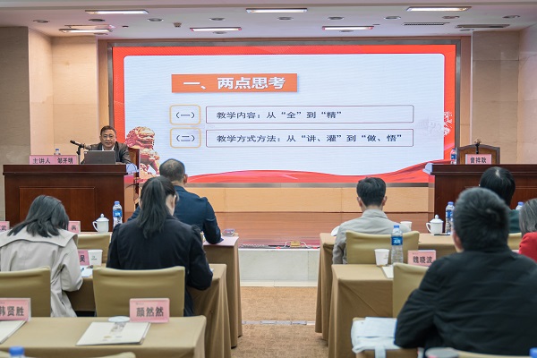 教育部“青年長江學(xué)者”,中央馬理論工程首席專家,中山大學(xué)中共黨史黨建研究院執(zhí)行院長、馬克思主義學(xué)院副院長張浩教授作《講深講透講活“習(xí)近平新時(shí)代中國特色社會(huì)主義思想概論”課程》主題報(bào)告,強(qiáng)調(diào)思政課教師要以“講深”道理為著力點(diǎn),深耕教學(xué)內(nèi)容;要以“講透”道理為著力點(diǎn),精構(gòu)教學(xué)過程;要以“講活”道理為著力點(diǎn),創(chuàng)新教學(xué)方式。