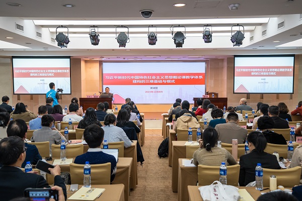 在主旨報(bào)告環(huán)節(jié),教育部“青年長江學(xué)者”、中央馬理論工程首席專家、北京大學(xué)馬克思主義學(xué)院副院長陳培永教授以《關(guān)于“習(xí)近平新時(shí)代中國特色社會(huì)主義思想概論”課教學(xué)與研究的幾個(gè)問題》為題,從習(xí)近平新時(shí)代中國特色社會(huì)主義思想的總體把握、教材體系向教學(xué)體系轉(zhuǎn)化、學(xué)術(shù)研究思路、學(xué)術(shù)研究支撐教學(xué)四個(gè)方面,對如何進(jìn)行教學(xué)專題設(shè)計(jì)、學(xué)術(shù)選題、課題申報(bào)進(jìn)行了系統(tǒng)講授,為與會(huì)教師提高“習(xí)近平新時(shí)代中國特色社會(huì)主義思想概論”課教學(xué)研究實(shí)效提供了方法和指引。