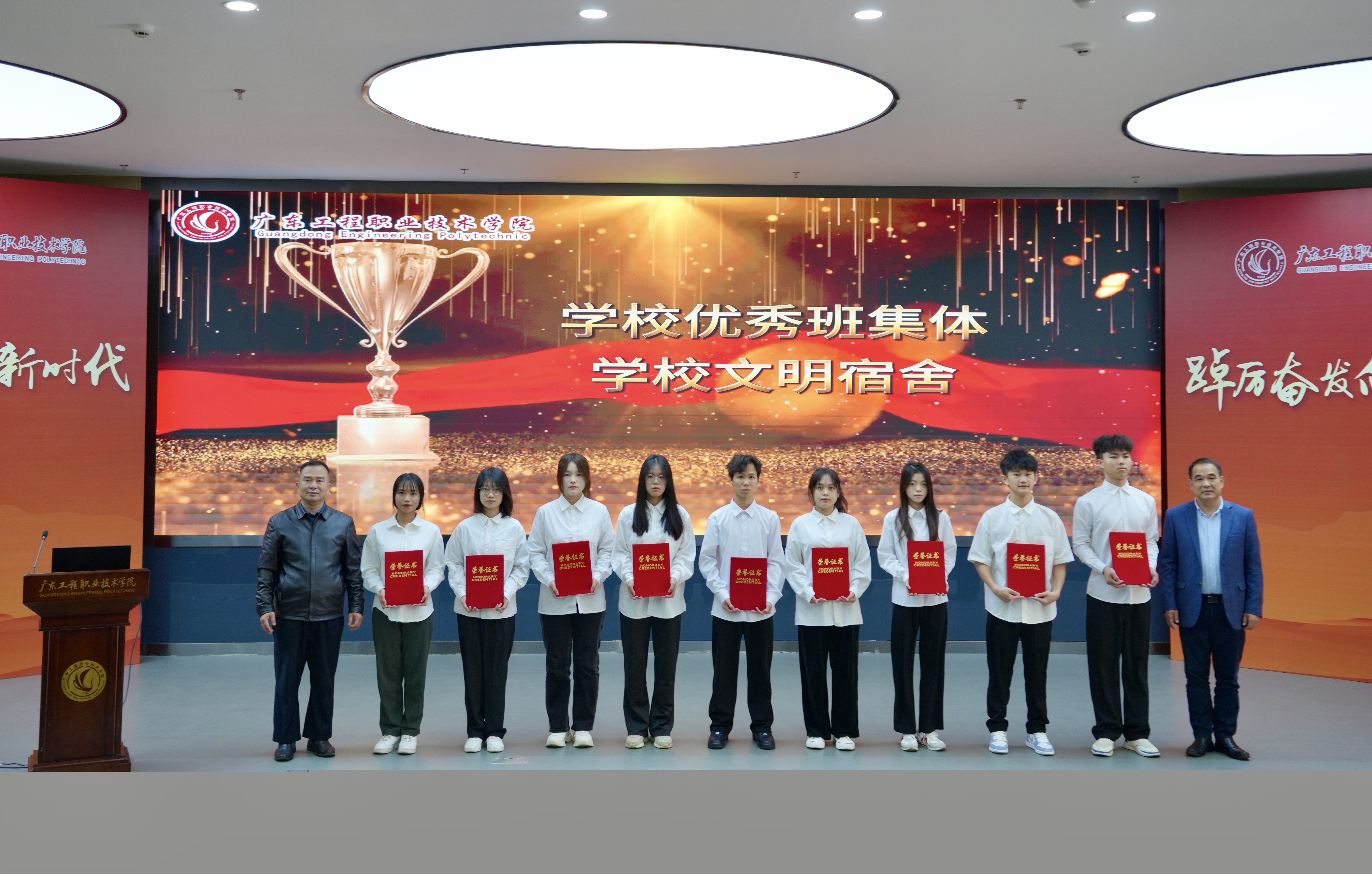 人工智能學(xué)院黨委書記朱魏峰、公共服務(wù)學(xué)院黨委書記吳文豐為“學(xué)校優(yōu)秀班集體”、“學(xué)校文明宿舍”獲獎(jiǎng)學(xué)生代表頒獎(jiǎng)