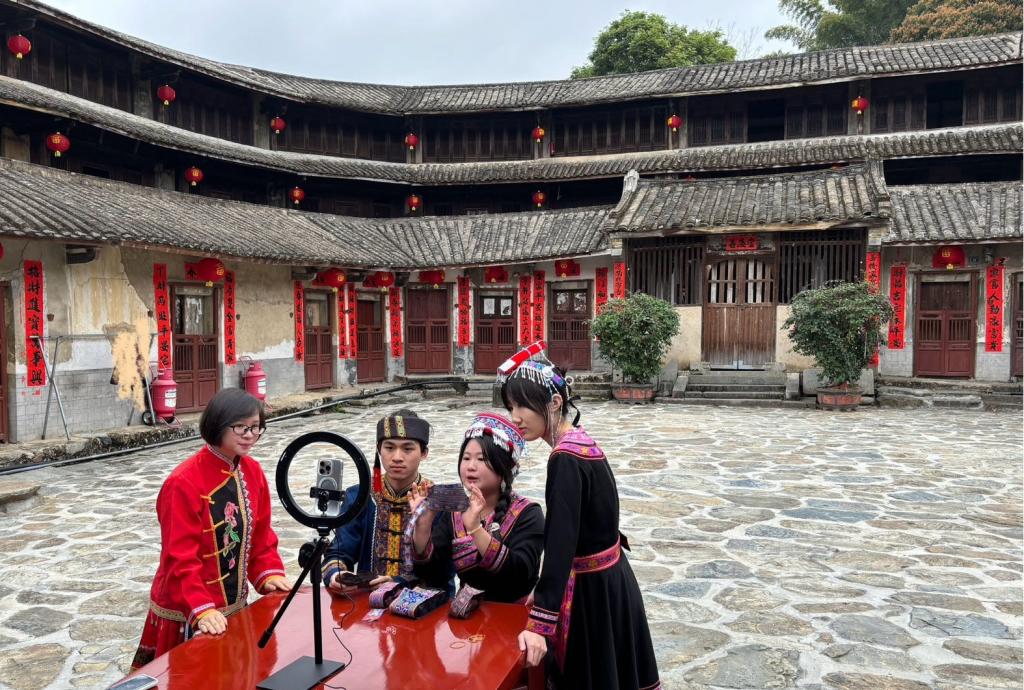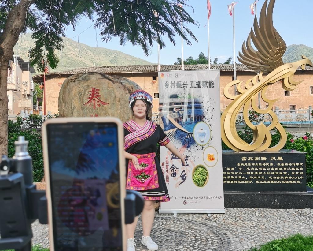 隨著“數(shù)商興農(nóng)”的廣泛實(shí)施,流量已然成為助力鄉(xiāng)村振興的“新農(nóng)資”。通過(guò)新媒體直播,更多的人了解藍(lán)屋村,認(rèn)識(shí)畬族,走進(jìn)畬鄉(xiāng),遇見(jiàn)藍(lán)氏圍屋-泰華樓,探尋畬族的手工藝品,文創(chuàng)產(chǎn)品,農(nóng)特產(chǎn)品,不僅帶動(dòng)了當(dāng)?shù)乩习傩盏慕?jīng)濟(jì)收益,同時(shí)打開(kāi)了藍(lán)屋村文旅產(chǎn)業(yè)的大門(mén)。積極響應(yīng)百千萬(wàn)高質(zhì)量發(fā)展工程,根據(jù)“雙百行動(dòng)”工作部署,舉行政校聯(lián)動(dòng)直播活動(dòng),助力地方經(jīng)濟(jì)發(fā)展,同時(shí)也給高職學(xué)生提供實(shí)踐平臺(tái)和機(jī)會(huì),在實(shí)踐中提升家國(guó)情懷,增強(qiáng)民族團(tuán)結(jié)的意識(shí),謹(jǐn)記鄉(xiāng)村振興的使命,是思政教育的重要途徑。