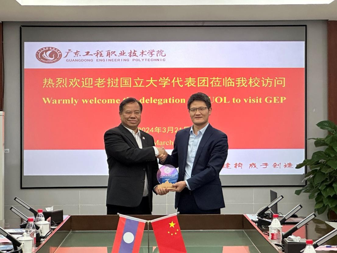 烏冬·鵬坎平校長對學(xué)校的熱情接待表示感謝,介紹了老撾國立大學(xué)的辦學(xué)歷史與基本情況,表達(dá)了主動到學(xué)校訪問,是希望探索雙方在“中文+技能”工程類專業(yè)領(lǐng)域的合作潛力,希望借助學(xué)校在海外職業(yè)標(biāo)準(zhǔn)開發(fā)的經(jīng)驗,共同參與老撾在工程類專業(yè)的教學(xué)標(biāo)準(zhǔn)建設(shè),以此促進(jìn)兩國在職教育領(lǐng)域的深度合作。