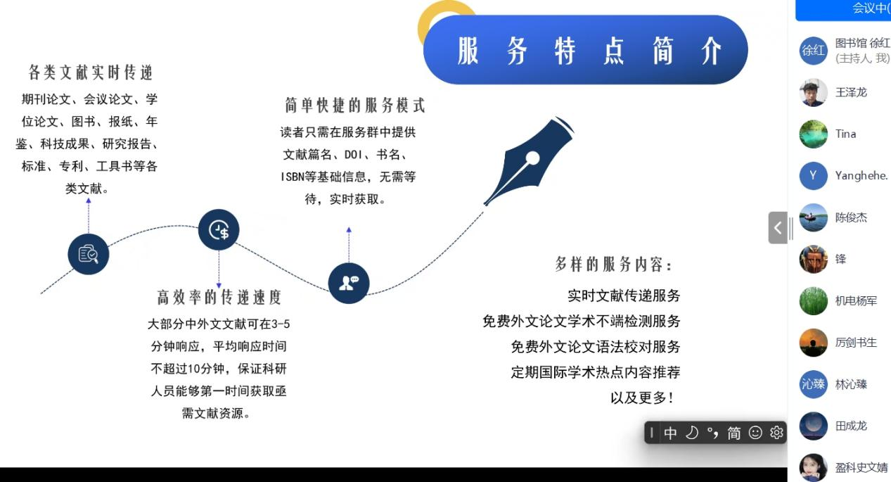 5月8日的“青梨AI科研服務助手使用方法”專題講座中,盈科千信公司的王澤龍老師向大家介紹了青梨AI科研服務助手,它依托于微信小程序和學科服務群,以全新形式為科研教學人員打造智能高效的專屬學科服務,使老師們在科研發(fā)文、文獻調研、學術追蹤中遇到的問題迎刃而解,提供更加強大的學術資源保障。講座內容切合我校教師的需求,獲得參會教師的一致好評。