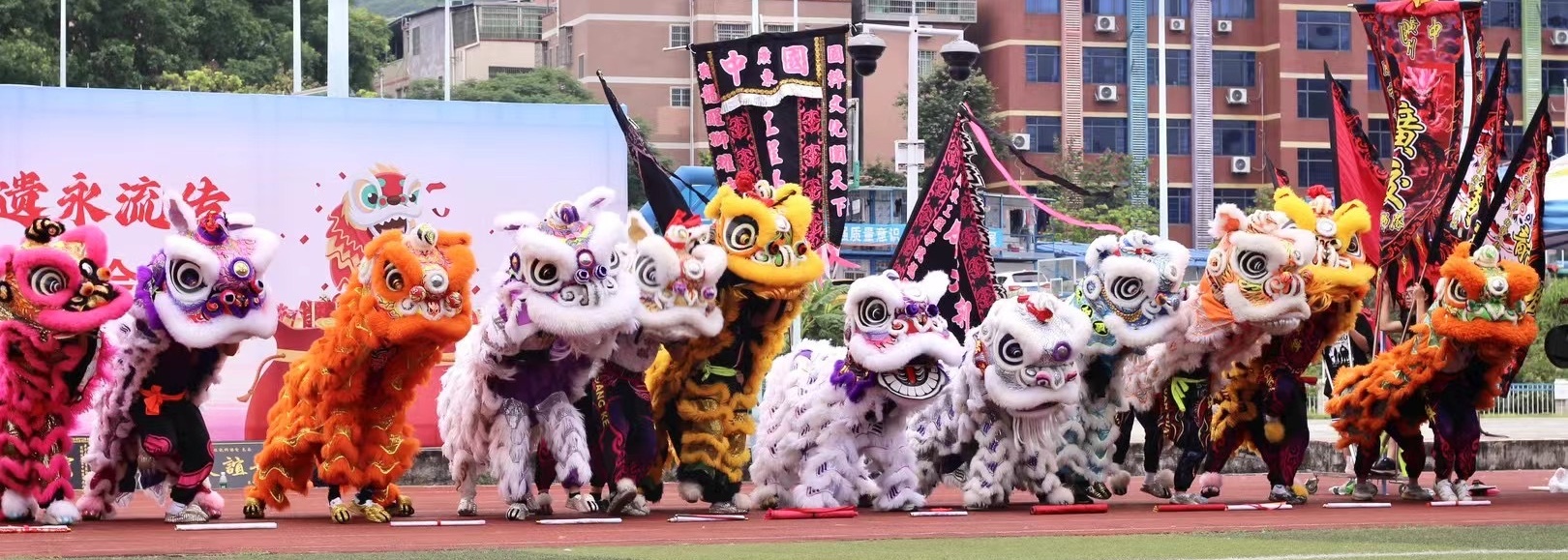 為了弘揚(yáng)中華民族優(yōu)秀傳統(tǒng)文化,傳承中華龍獅精神,在學(xué)校領(lǐng)導(dǎo)的大力支持下,在公共課教學(xué)部和校團(tuán)委的悉心指導(dǎo)下,2024年5月18日,龍獅協(xié)會(huì)在廣州校區(qū)足球場(chǎng)順利舉辦了“拜獅敬傳承,非遺永流傳”——高校龍獅交流會(huì),為同學(xué)們送上了一場(chǎng)精彩紛呈的傳統(tǒng)文化盛宴。本次龍獅交流會(huì)共有廣東金融學(xué)院、廣東外語(yǔ)藝術(shù)職業(yè)技術(shù)學(xué)院、廣東食品藥品職業(yè)技術(shù)學(xué)院等省內(nèi)15所兄弟院校的隊(duì)伍參加。