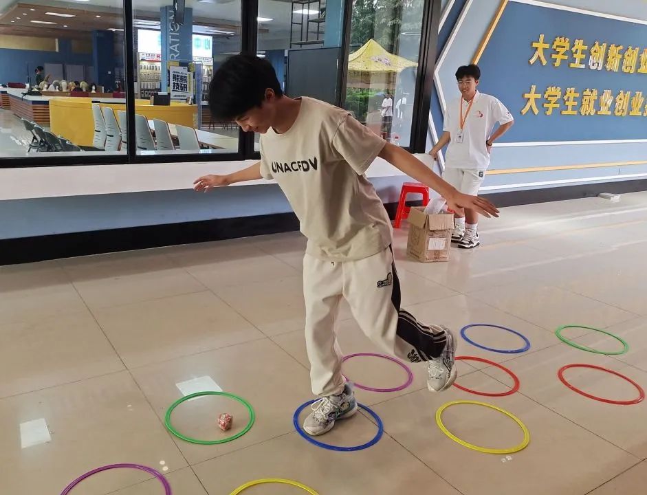 以體強心,組織以“體育為本,以體育人,健康成長” 為主題的活動項目,在“體育悅動心靈”活動中,學(xué)生通過擲沙包來激起大家對體育活動的興趣。體育鍛煉能夠促進身體內(nèi)多巴胺、血清素等神經(jīng)遞質(zhì)的分泌,促進身體代謝和身體機能調(diào)整,使人產(chǎn)生愉悅的心情,進而緩解心理壓力,消除負面情緒,增強心理穩(wěn)定性。