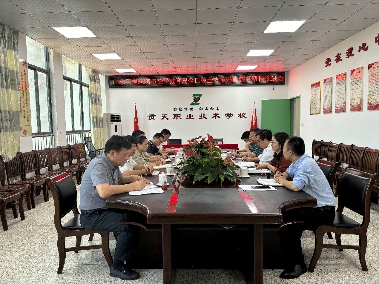 5月29日上午,調(diào)研組到貢天職校推進(jìn)全口徑全方位基礎(chǔ)教育幫扶工作,會(huì)議由縣教育副局長(zhǎng)黃授慧主持,縣教育局教育股、人事股、教師發(fā)展中心教研室、貢天職業(yè)技術(shù)學(xué)校及饒洋中學(xué)主要負(fù)責(zé)同志均出席了會(huì)議。會(huì)上,我校與饒平縣饒洋中學(xué)簽訂《共建“教師專業(yè)發(fā)展聯(lián)盟學(xué)校”合作協(xié)議》,學(xué)校駐饒服務(wù)隊(duì)向與會(huì)領(lǐng)導(dǎo)匯報(bào)全口徑全方位幫扶工作進(jìn)展,貢天職校、縣教師發(fā)展中心及饒洋中心分別與我校人力資源部、商務(wù)學(xué)院及現(xiàn)代教育技術(shù)中心等部門(mén)針對(duì)“三二分段對(duì)接”、教育教學(xué)改革、教師專業(yè)發(fā)展等交換了工作意見(jiàn)。