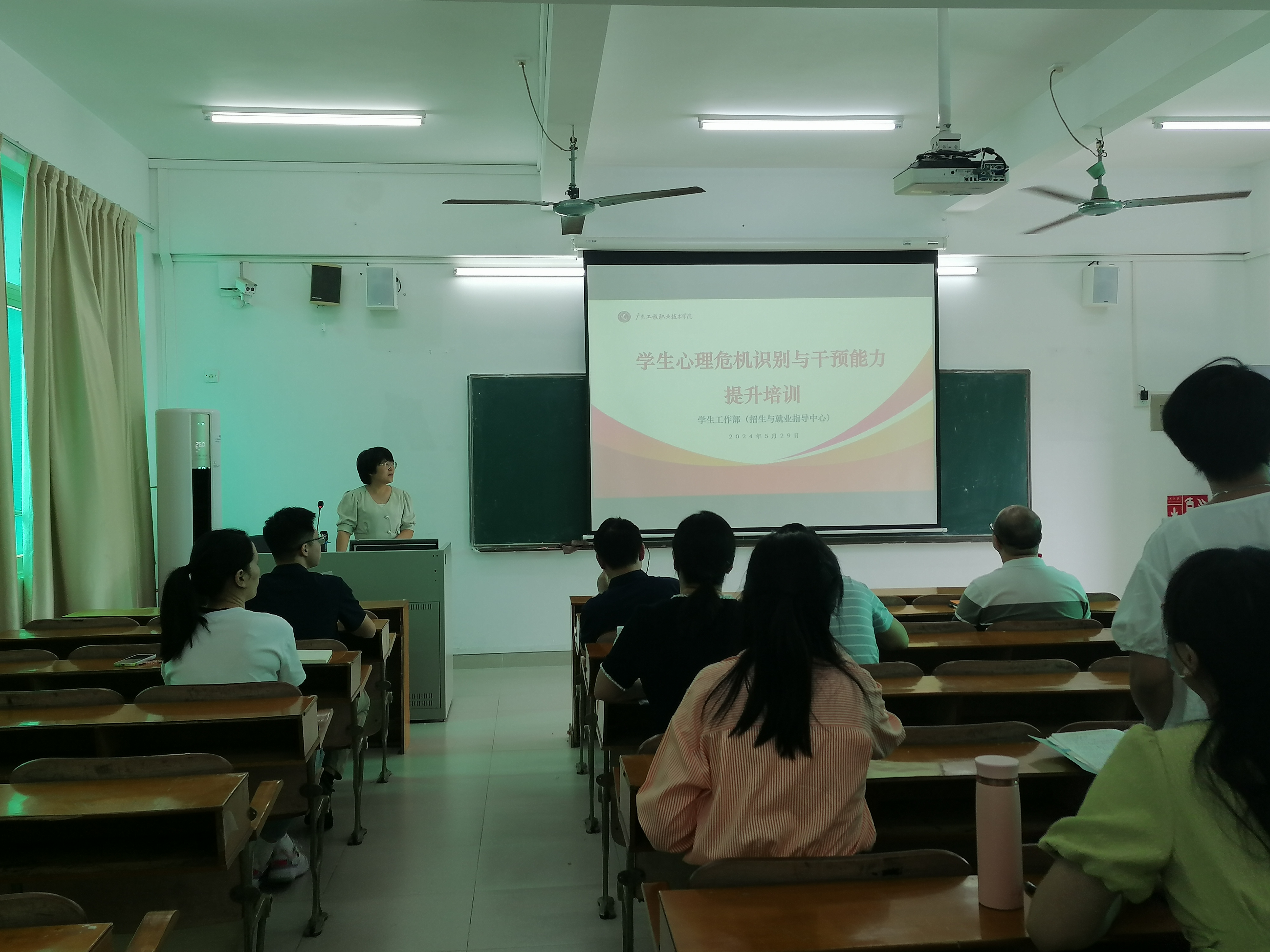 5月29日上午,學(xué)校學(xué)生工作部在廣州校區(qū)教1-405和清遠(yuǎn)校區(qū)Q1-210教室面向全體輔導(dǎo)員舉行了輔導(dǎo)員心理危機(jī)識別與干預(yù)能力提升專題培訓(xùn)。由我校心理健康輔導(dǎo)中心郭凱娟、林峰主講。全體輔導(dǎo)員參加了培訓(xùn)。