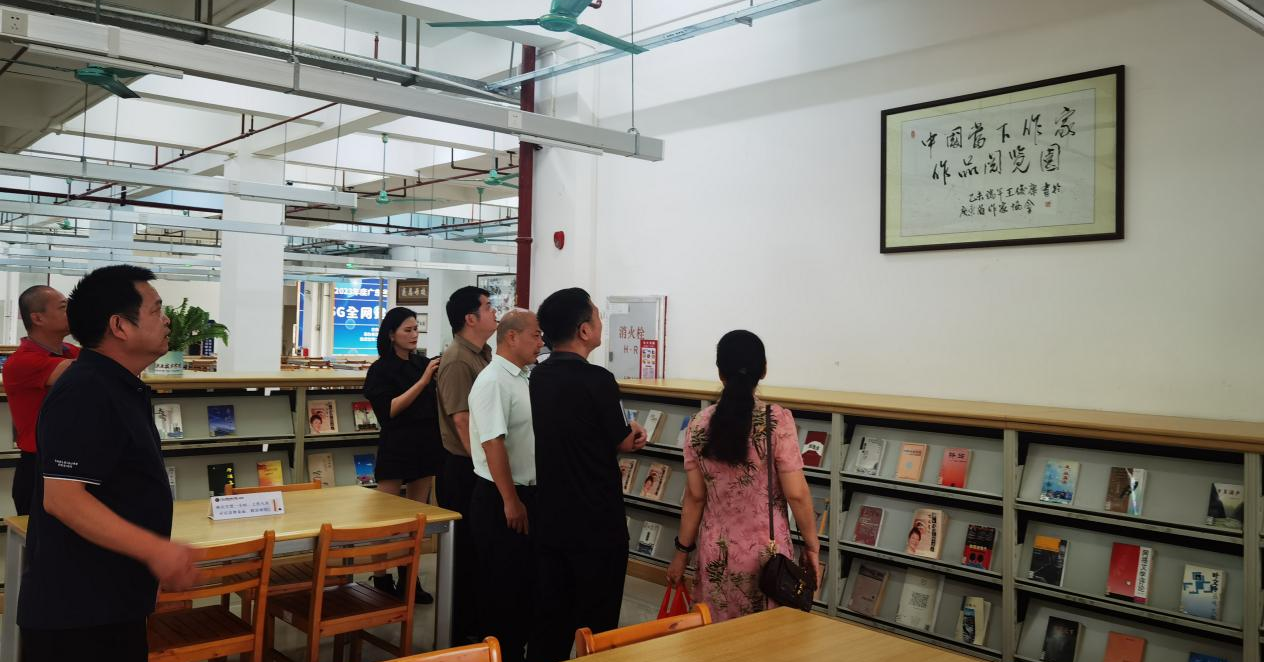 隨后,圖書館鄧中云館長(zhǎng)陪同作家一行參觀我校特有的“中國(guó)當(dāng)下作家作品閱覽園”。