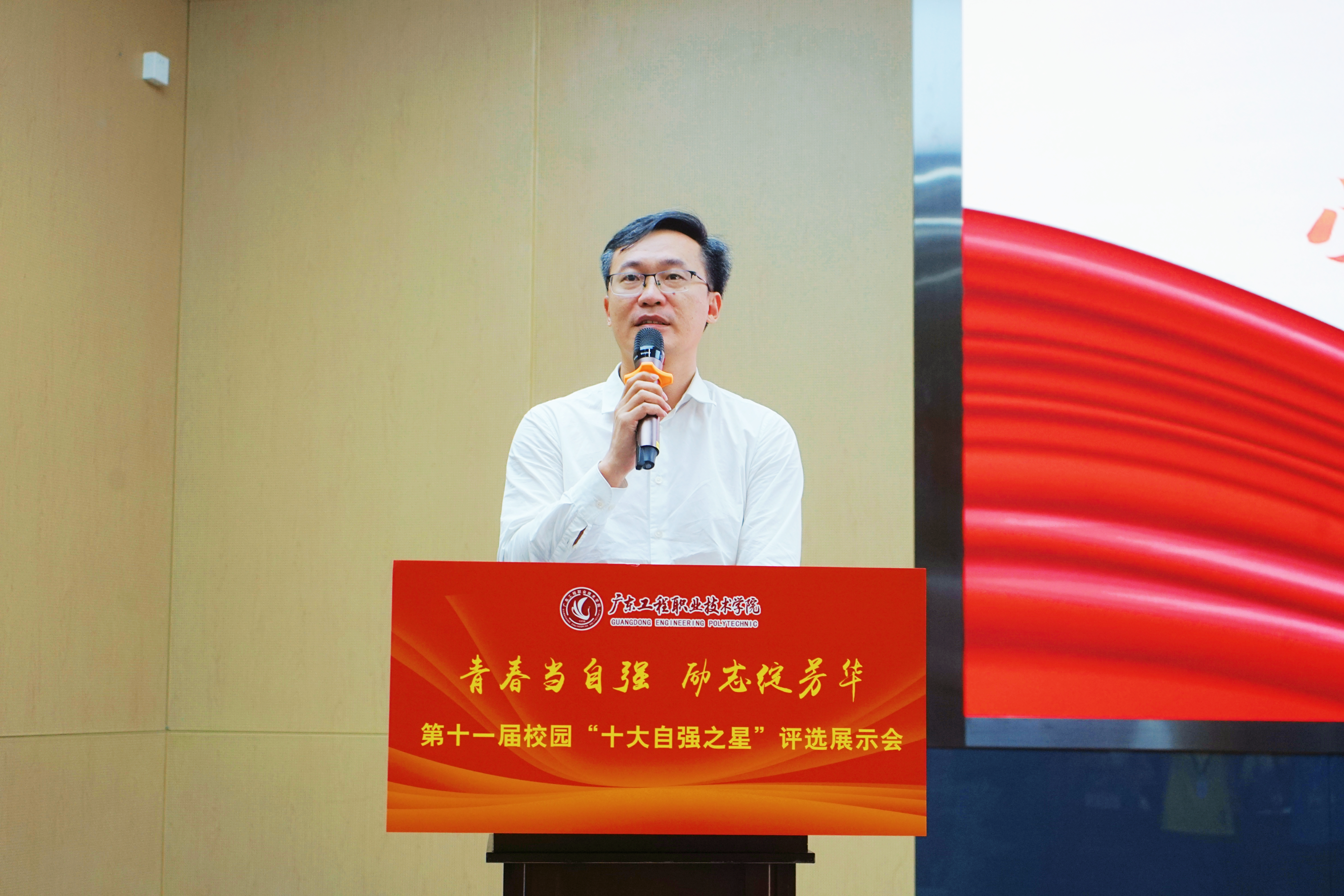 張小廣副校長指出,學(xué)校高度重視資助育人工作,切實(shí)做好“保民生、暖民心”工程,讓有理想的青年都有追求進(jìn)步的保障。“十大自強(qiáng)之星”評選活動(dòng),同學(xué)們用努力奮斗獲得的優(yōu)異的成績證明了自己過硬的實(shí)力和充盈的內(nèi)心。他勉勵(lì)學(xué)子們:一是要堅(jiān)定理想信念。始終要把愛國主義作為始終高揚(yáng)的光輝旗幟,努力成長為中國特色社會(huì)主義的合格建設(shè)者和可靠接班人;二是要錘煉過硬本領(lǐng)。厚植家國情懷,讓個(gè)人理想與國家發(fā)展同頻共振,以理想之光照亮前行之路,與人民同心、與國家同向、與時(shí)代同行;三是要勇于擔(dān)當(dāng)作為。樹立成才報(bào)國的宏偉之志,以校歌中“筑夢同行,求真厚德;志存高遠(yuǎn),為家為國”的情懷,不忘初心,超越自我,勇于擔(dān)當(dāng)時(shí)代責(zé)任,為學(xué)校“雙高”建設(shè)高質(zhì)量發(fā)展助力,把自己奮斗的青春夢融入中華民族偉大復(fù)興的中國夢。