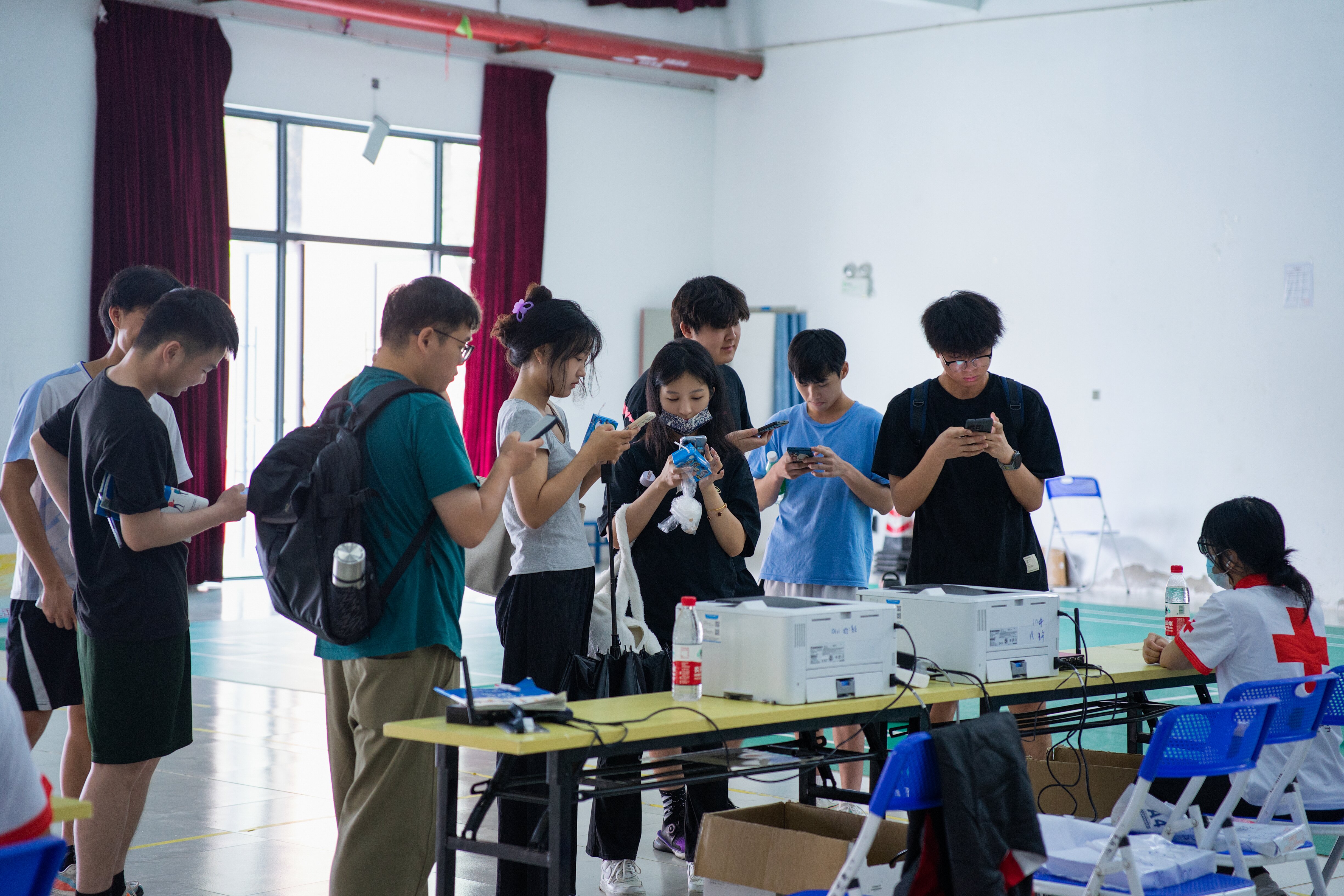 獻血活動當天,醫(yī)護工作人員對紅十字志愿者進行了系統(tǒng)的崗前培訓,指導各區(qū)域崗位工作任務,熟悉獻血流程。整個流程劃分為6個區(qū)域,分別是血壓測量區(qū)、信息錄入?yún)^(qū)、初篩化驗區(qū)、飲食等候區(qū)、獻血區(qū)、領證區(qū)。在獻血過程中,醫(yī)護人員不僅為同學提供了專業(yè)的獻血知識普及,還給予他們指導與幫助。共38名紅十字志愿者全程參與,為獻血者提供面包和葡萄糖水等溫馨服務,體現(xiàn)了無微不至的關懷。現(xiàn)場還特別為獻血者準備了《獻血感謝狀》和“世界獻血者日”專屬紀念幣等精美紀念品,吸引了眾多學生積極參與。