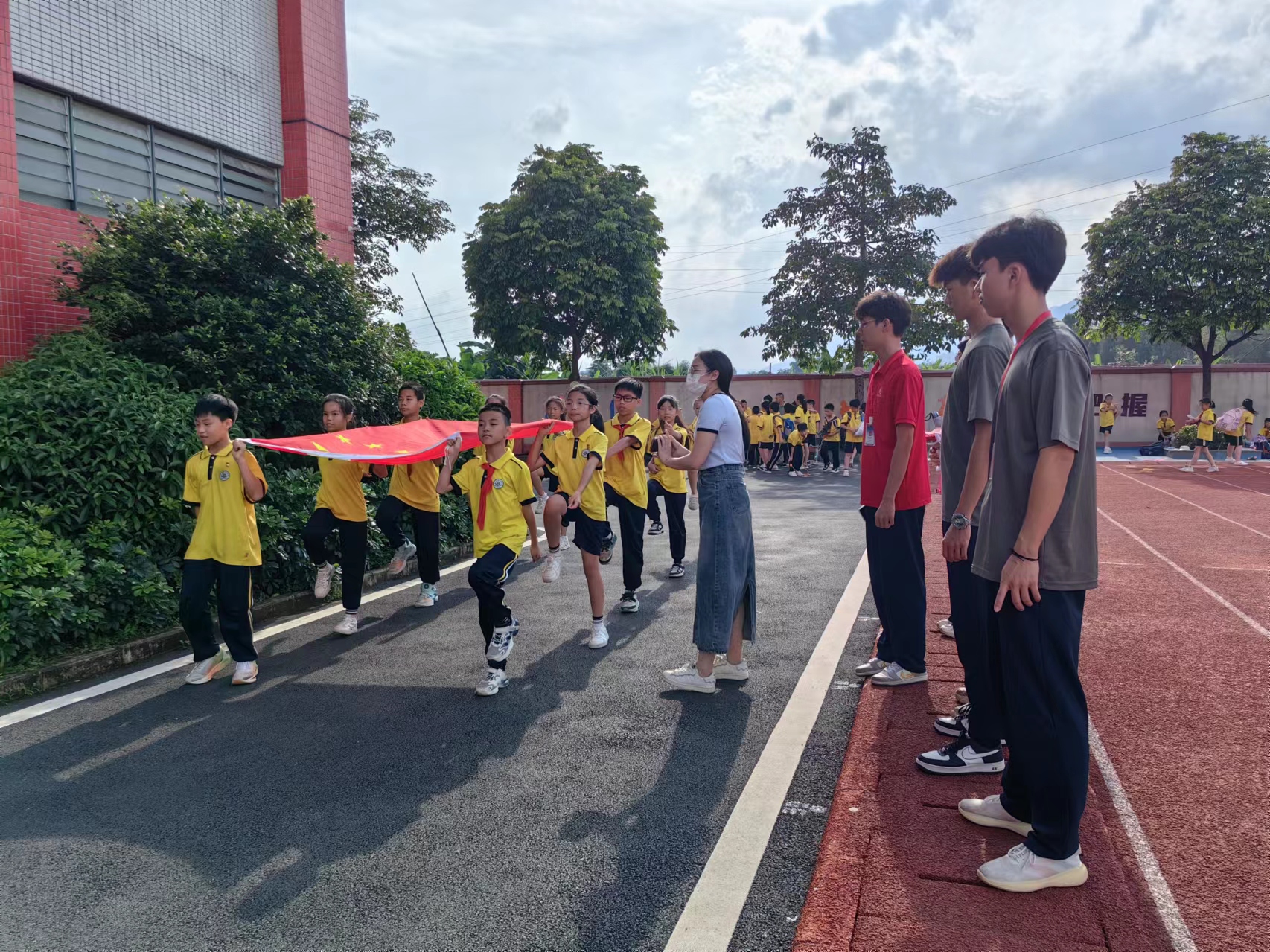 6月13日,學(xué)生工作部施健老師帶領(lǐng)國(guó)旗護(hù)衛(wèi)隊(duì)7名學(xué)生骨干前往清遠(yuǎn)市長(zhǎng)埔小學(xué)開展愛國(guó)主義教育共建活動(dòng)。愛國(guó)主義教育宣講團(tuán)成員為長(zhǎng)埔小學(xué)國(guó)旗班宣講《中華人民共和國(guó)國(guó)旗法》和井岡山精神,并對(duì)長(zhǎng)埔小學(xué)國(guó)旗班開展隊(duì)列動(dòng)作、升旗等的針對(duì)性訓(xùn)練指導(dǎo)。