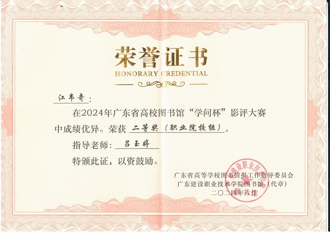 為推進(jìn)影評大賽的開展,圖書館積極宣傳,發(fā)動(dòng)和組織學(xué)生參賽,收到學(xué)生有效投稿作品34篇。經(jīng)過作品查重和圖書館初評小組評審,選出5篇優(yōu)秀作品參加全省終評。在全省終評中,我校人工智能學(xué)院江韋奇同學(xué)的作品“傳統(tǒng)詩詞文化下《長安三萬里》的電影美術(shù)場景建構(gòu)”榮獲職業(yè)院校組二等獎(jiǎng)。