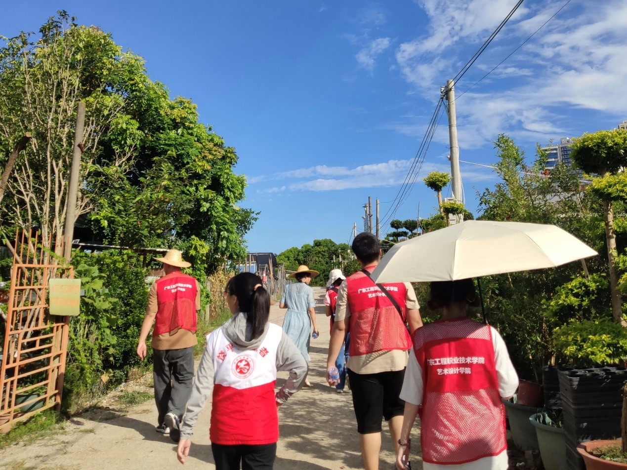 7月8日當(dāng)天,隊(duì)伍抵達(dá)大畔寮村就馬上開展工作,在省“雙百行動(dòng)”服務(wù)隊(duì)黎迪斯副隊(duì)長(zhǎng)和學(xué)院肖飛老師、曾蔚老師、李小能老師攜同“藝?yán)L夢(mèng)想隊(duì)”百千萬(wàn)突擊隊(duì)優(yōu)秀學(xué)生助理組成的師生教學(xué)團(tuán)隊(duì),在當(dāng)?shù)攸h支部余浩書記、村團(tuán)委余靜屏?xí)浀膸ьI(lǐng)下進(jìn)行了實(shí)地走訪,并進(jìn)行了深入的交談,最終確定以“宣傳花木,倡導(dǎo)新生活”為這次墻繪作畫的任務(wù)美化鄉(xiāng)村,提升鄉(xiāng)村的文化氛圍。
