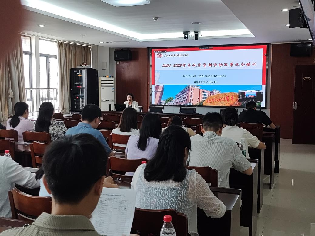 9月2日,學(xué)生工作部(招生與就業(yè)指導(dǎo)中心)在廣州校區(qū)辦公樓511會議室和省職教城(清遠)校區(qū)實訓(xùn)室4206連線召開2024—2025學(xué)年秋季學(xué)期資助政策業(yè)務(wù)培訓(xùn)會,各二級學(xué)院全體輔導(dǎo)員參加培訓(xùn),會議由學(xué)生工作部副部長曾婉玲主持。
