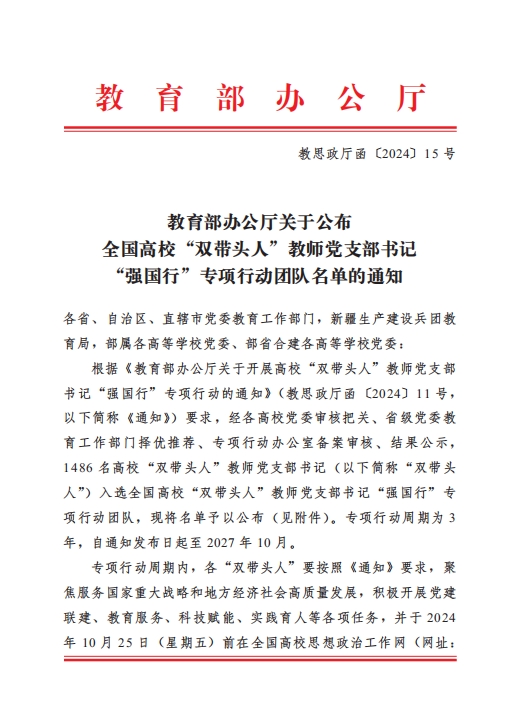 近日,教育部辦公廳印發(fā)了《關(guān)于公布全國高校“雙帶頭人”教師黨支部書記“強國行”專項行動團隊名單的通知》,我校馬克思主義學院教師第一黨支部入選。