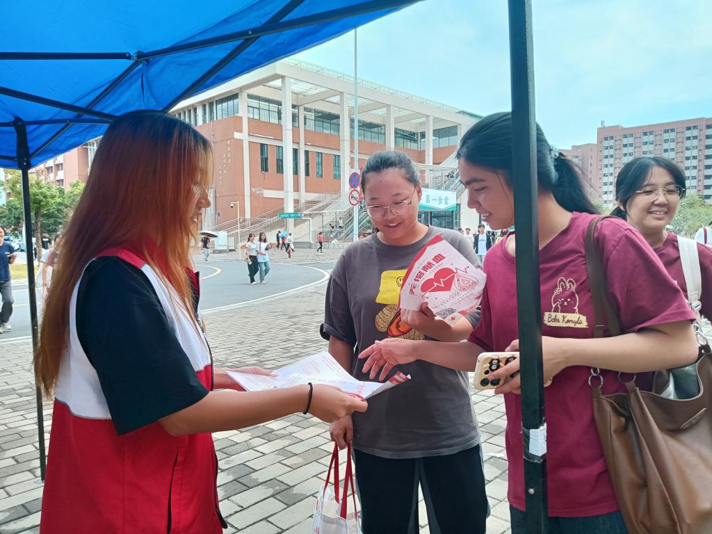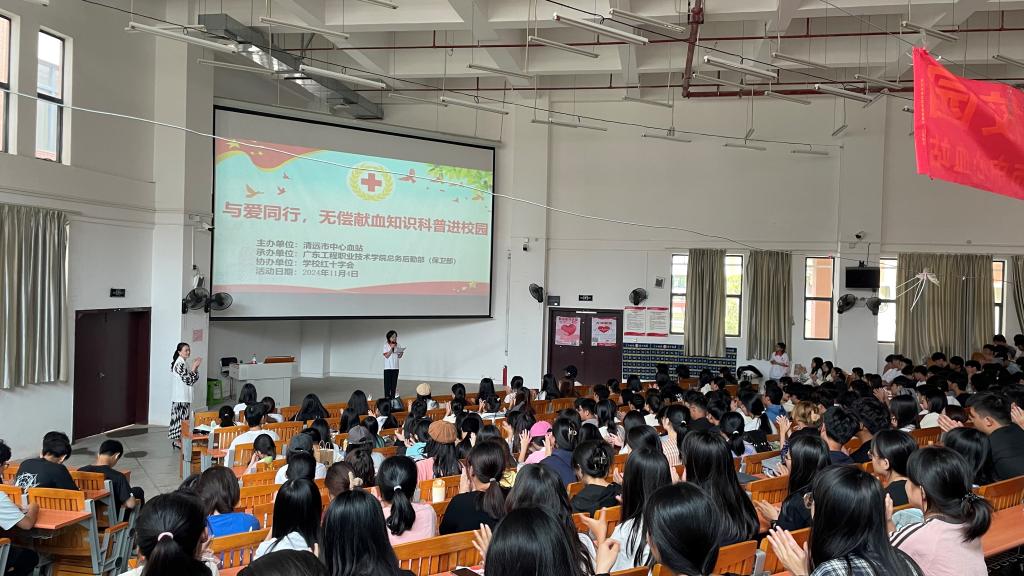 11月4日,學(xué)校特別邀請(qǐng)了清遠(yuǎn)市中心血站獻(xiàn)血管理科主任、內(nèi)科主治醫(yī)師梁小宇蒞臨校園,開展了一場(chǎng)生動(dòng)而詳實(shí)的獻(xiàn)血科普知識(shí)專題講座。通過專家的講解,學(xué)生們對(duì)無償獻(xiàn)血的重要性、安全性以及獻(xiàn)血前后的注意事項(xiàng)有了更為深入的了解,無償獻(xiàn)血的認(rèn)知度得到了顯著提升。為了更積極地宣傳和推廣無償獻(xiàn)血理念,鼓勵(lì)更多人積極參與到這份社會(huì)公益事業(yè)中,當(dāng)天設(shè)置了獻(xiàn)血宣傳攤位,同時(shí)通過微信公眾號(hào)、海報(bào)等途徑和方式進(jìn)行廣泛宣傳。