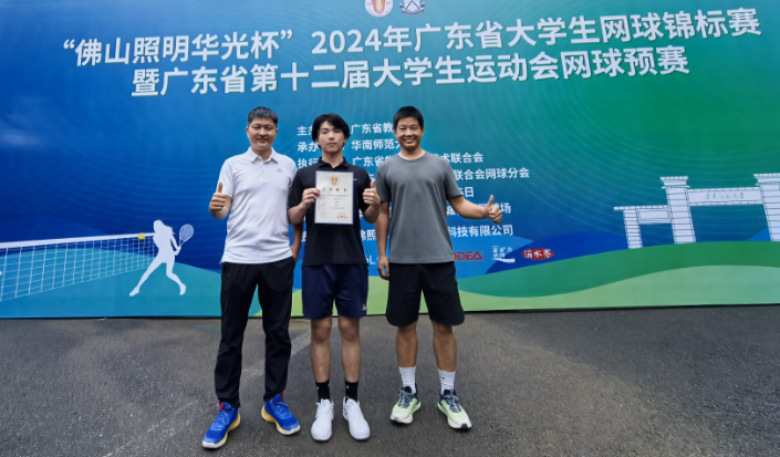 2024年11月10日至11月16日,由廣東省教育廳主辦,廣東省學生體育藝術聯(lián)合會執(zhí)行的2024年廣東省大學生網(wǎng)球錦標賽暨第十二屆廣東省大學生運動會預賽在廣州市華南師范大學大學城校區(qū)舉行,我校代表隊由別業(yè)軍主任擔任領隊,王小帥、李虎兩位老師帶領酒店管理學院莊偉濤同學參賽。