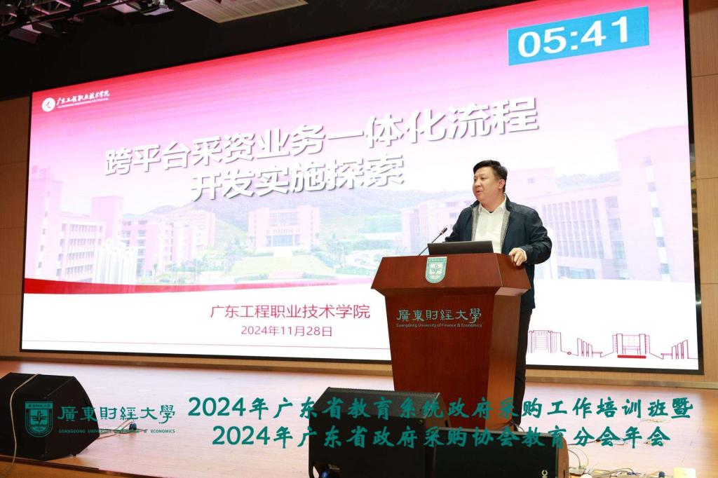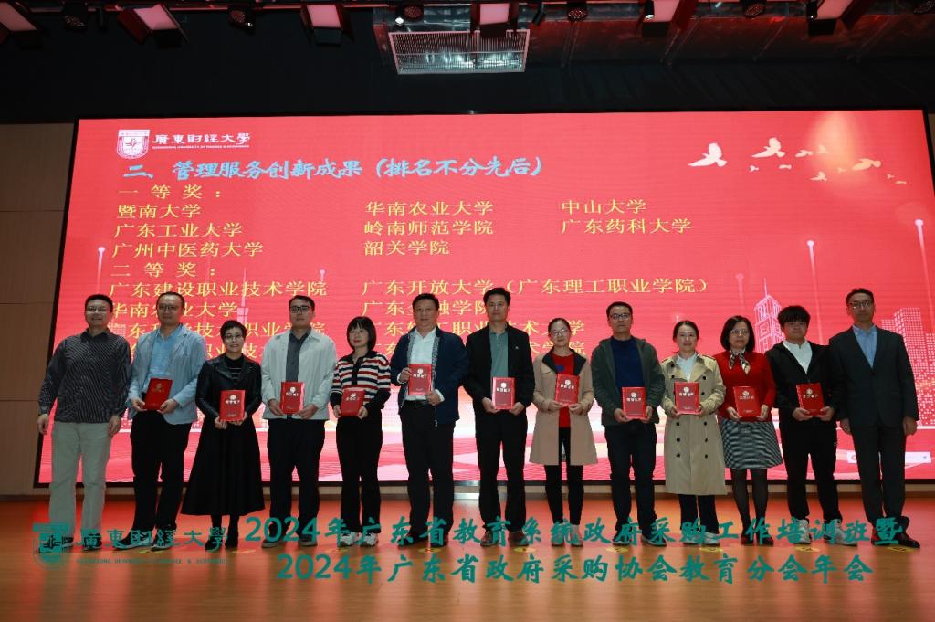 在本次會議上,我校取得重大歷史突破,學(xué)校首次獲評“2024年度高校采購工作先進(jìn)集體”、管理服務(wù)創(chuàng)新成果二等獎,陳運(yùn)財獲評“2024年度高校采購工作先進(jìn)個人”三項(xiàng)殊榮,也是我省本年度唯一一所同時獲得以上榮譽(yù)的高職院校。與此同時,我校受廣東省政府采購協(xié)會教育分會邀請,以《跨平臺采資業(yè)務(wù)一體化流程開發(fā)實(shí)施探索》為主題,在大會上分享了我校在政府采購領(lǐng)域的有效做法與先進(jìn)工作經(jīng)驗(yàn)。