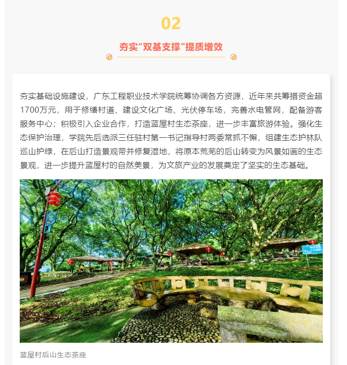 2025年1月10日,潮州市“百千萬工程”指揮部推送一篇名為《廣東工程職業(yè)技術(shù)學(xué)院助力饒平縣藍屋村打造文旅工程》的報道,充分展現(xiàn)了我校作為省屬高校落實“雙百行動”、助力鄉(xiāng)村振興的工作成效。