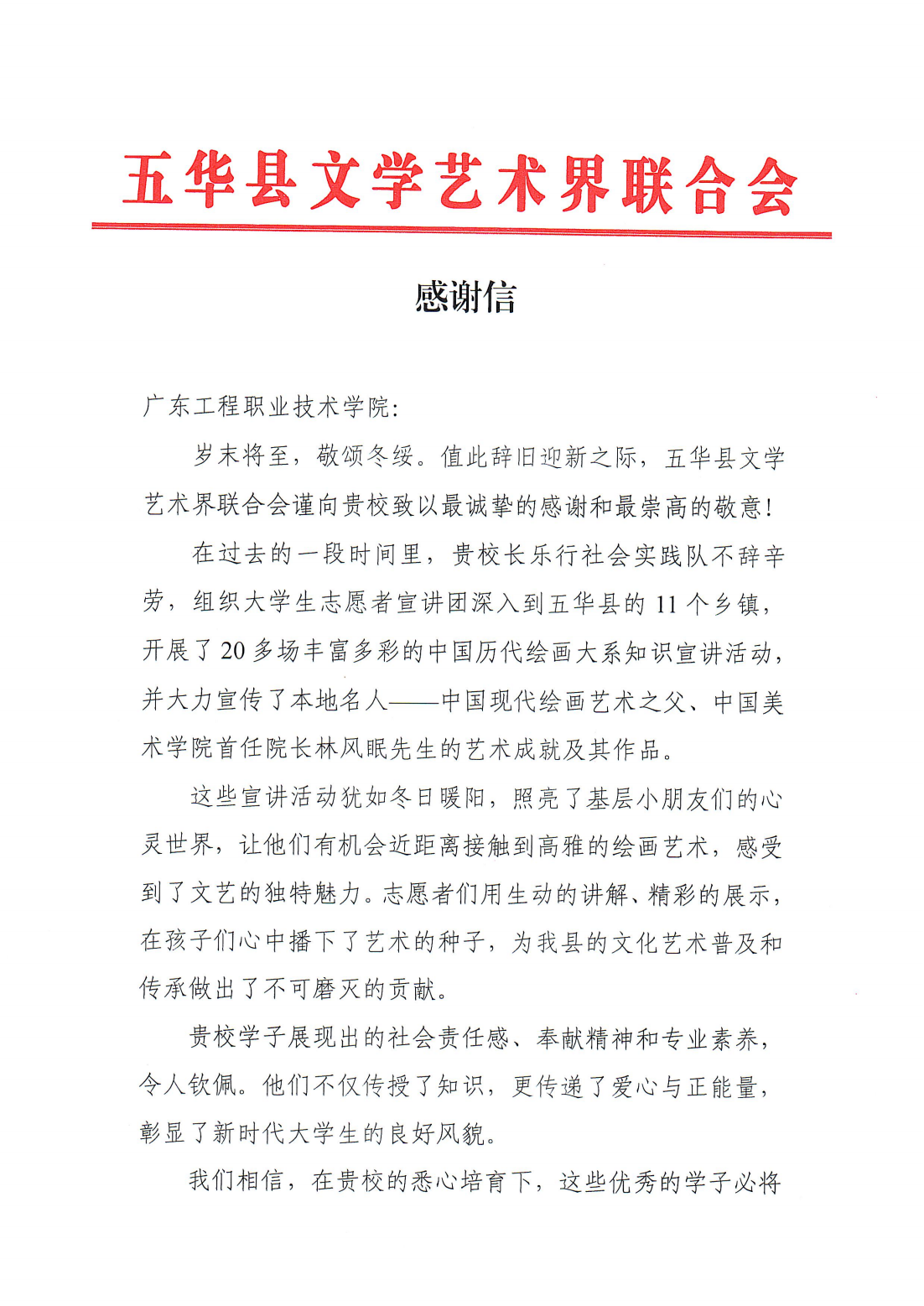 (五華縣文學(xué)藝術(shù)界聯(lián)合會(huì)感謝信)