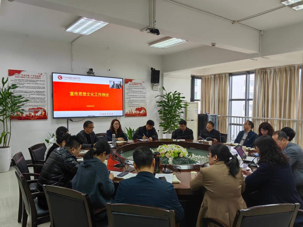 會議上,學校相關(guān)部門、各二級學院對寒假期間及新學期開學以來的校園政治安全意識形態(tài)安全工作及風險點進行研判分析。宣傳部(武裝部)部長林華開通報近期學校政治安全與意識形態(tài)、宣傳文化思想等工作情況,并對下一階段工作進行安排,進一步組織師生深入學習貫徹全省教育大會精神,上好春季學期思政第一課,更新、完善二級部門調(diào)整后的網(wǎng)站、公眾號、宣傳欄,認真落實“雙高”校建設(shè)宣傳工作任務(wù),做好近期意識形態(tài)和輿情風險防范工作。