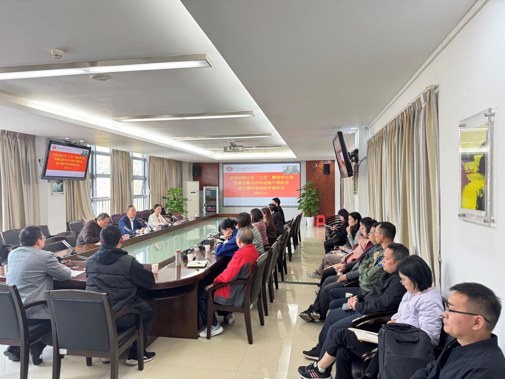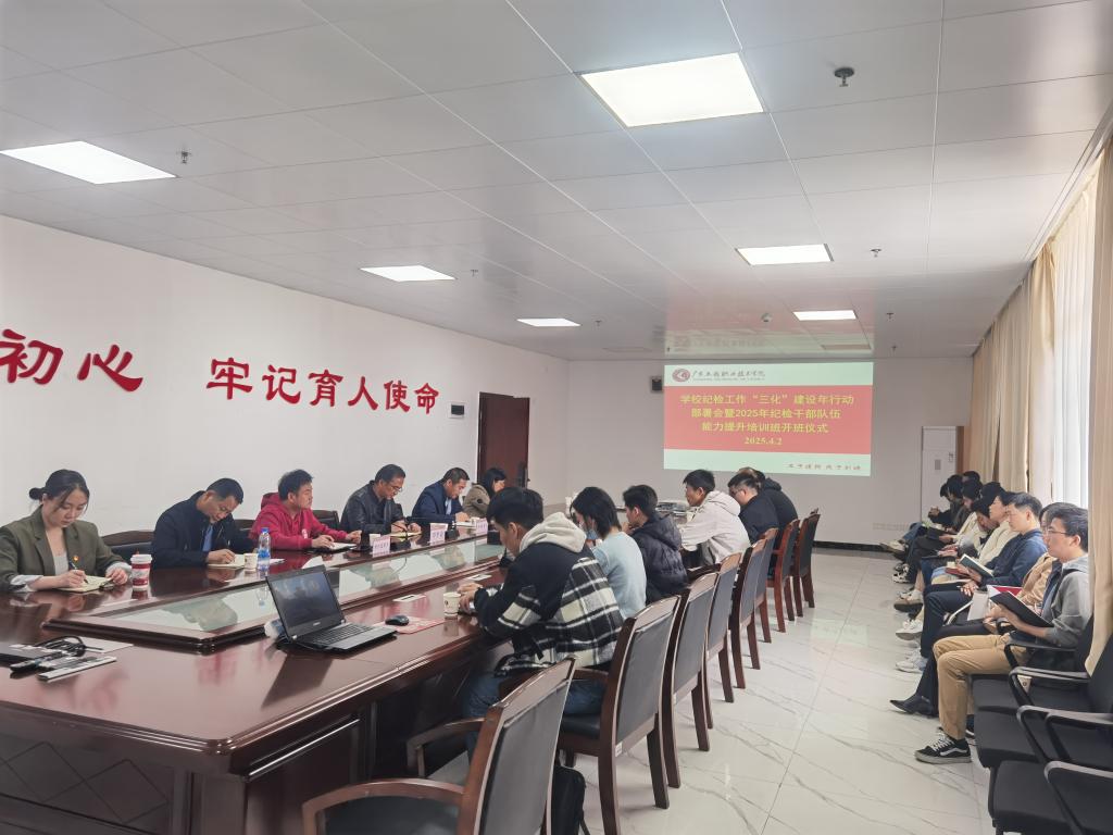 2025年4月2日下午,學校在廣州校區(qū)辦公樓615室和省職教城校區(qū)辦公樓411室召開紀檢工作“三化”建設(shè)年行動部署會暨2025年紀檢干部隊伍能力提升班開班儀式。學校黨委副書記、紀委書記徐振昌同志,學校紀委委員、各級黨組織紀檢委員、特約監(jiān)督員參加會議。會議由學校紀委副書記、紀檢室主任廖瑋同志主持。