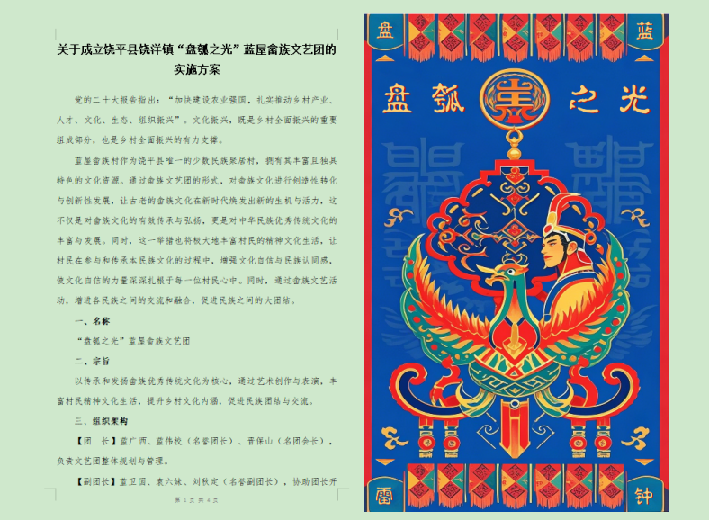 我校擬草的畬族文藝團(tuán)實(shí)施方案及設(shè)計(jì)的團(tuán)旗