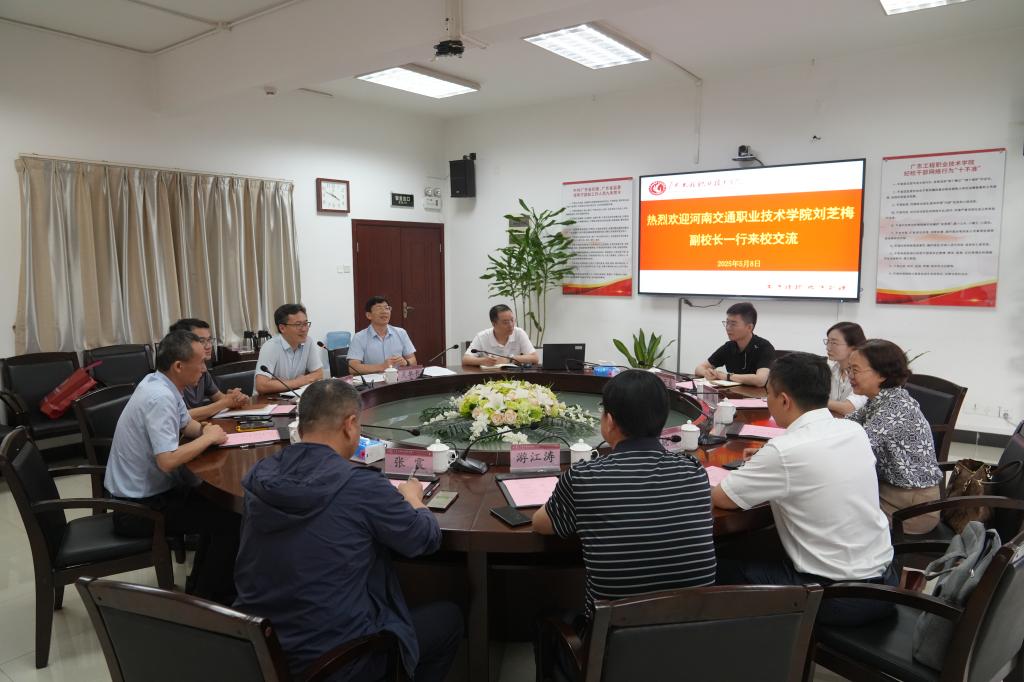 5月8日下午,河南交通職業(yè)技術(shù)學(xué)院黨委委員、副校長(zhǎng)劉芝梅一行來(lái)我校交流。學(xué)校黨委委員、副校長(zhǎng)張小廣出席并主持會(huì)議,學(xué)生工作部(招生與就業(yè)指導(dǎo)中心)部長(zhǎng)吳華長(zhǎng)、繼續(xù)教育學(xué)院院長(zhǎng)胡勇、人力資源部副部長(zhǎng)劉鋒等同志參加了會(huì)議。