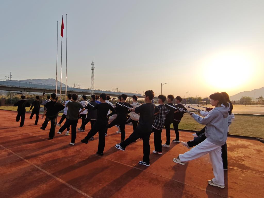 自賽事啟動以來,學(xué)校黨委高度重視,黨委方燕副書記勉勵指導(dǎo)教師和參賽隊伍,刻苦訓(xùn)練,不畏強手,沉著應(yīng)戰(zhàn),賽出水平,賽出成績。學(xué)校宣傳部(武裝部)統(tǒng)籌部署,學(xué)生工作部(招生與就業(yè)指導(dǎo)中心)、教務(wù)部、校團委等部門協(xié)調(diào),通過層層選拔組建國旗護衛(wèi)隊和軍事科目展演兩支參賽隊伍,科學(xué)嚴格認真開展備戰(zhàn)賽事。兩支隊伍全體隊員不畏風(fēng)雨、不懼日曬,開展高強度集訓(xùn):從隊伍組建、動作要領(lǐng)到列隊排面、精神面貌打磨,每個環(huán)節(jié)均反復(fù)錘煉。隊員們?nèi)站?xùn)練超12小時,在烈日下站軍姿、在風(fēng)雨中練協(xié)同,用汗水詮釋了“為校爭光”的信念與擔當。