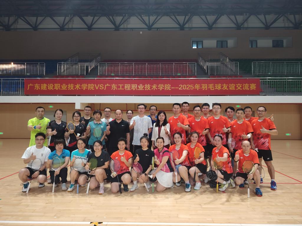 為增進(jìn)校際交流合作,提升教職工體育競技水平,5月13日,我校與廣東建設(shè)職業(yè)技術(shù)學(xué)院(以下簡稱“建設(shè)職院”)在學(xué)校體育館以球會友,開展羽毛球友誼交流賽。本次活動作為雙方參加2025年廣東省教科文衛(wèi)工會羽毛球賽事的熱身賽,建設(shè)職院由黨委委員、紀(jì)委書記王剛帶隊,我校由黨委委員、副校長張小廣帶隊,兩校工會專職副主席及部分參賽隊員參賽,以球會友、共促提升。