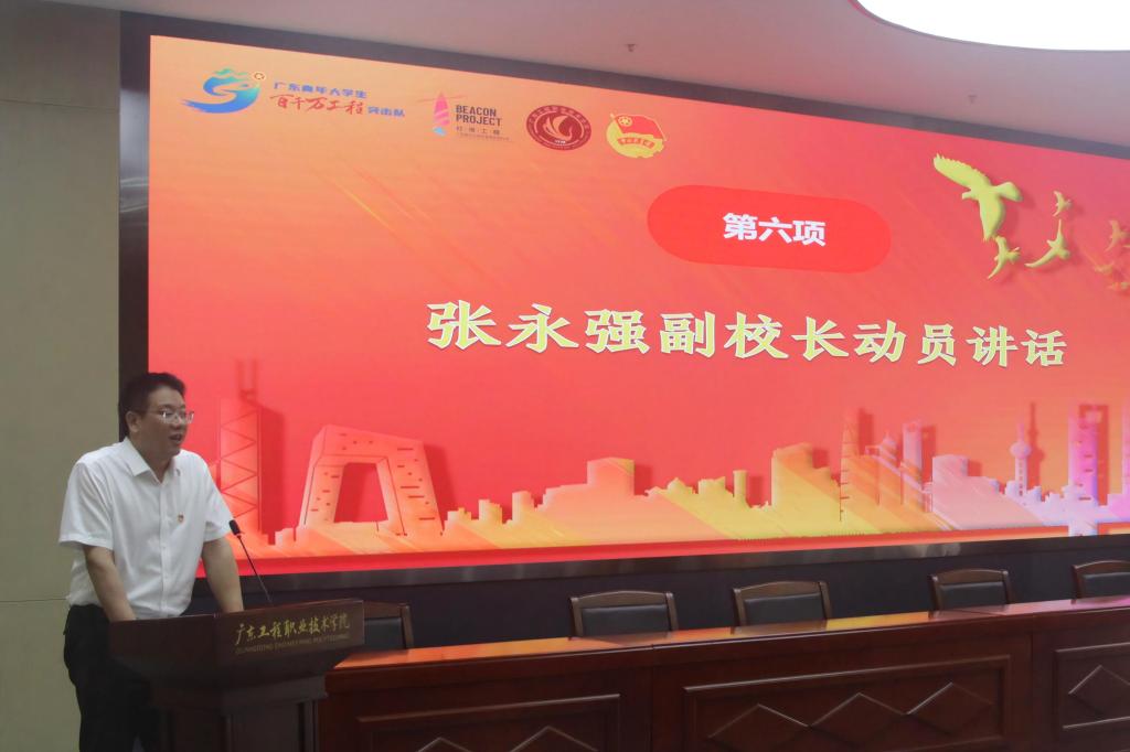 6月30日,學(xué)校2025年“百千萬工程”突擊隊(duì)出征儀式在省職教城報(bào)告廳舉行。學(xué)校副校長張永強(qiáng)出席出征儀式,各二級(jí)學(xué)院黨委副書記、團(tuán)學(xué)指導(dǎo)老師,校團(tuán)委全體老師和“百千萬工程”突擊隊(duì)師生代表參加儀式,儀式由校團(tuán)委副書記黃澄主持。