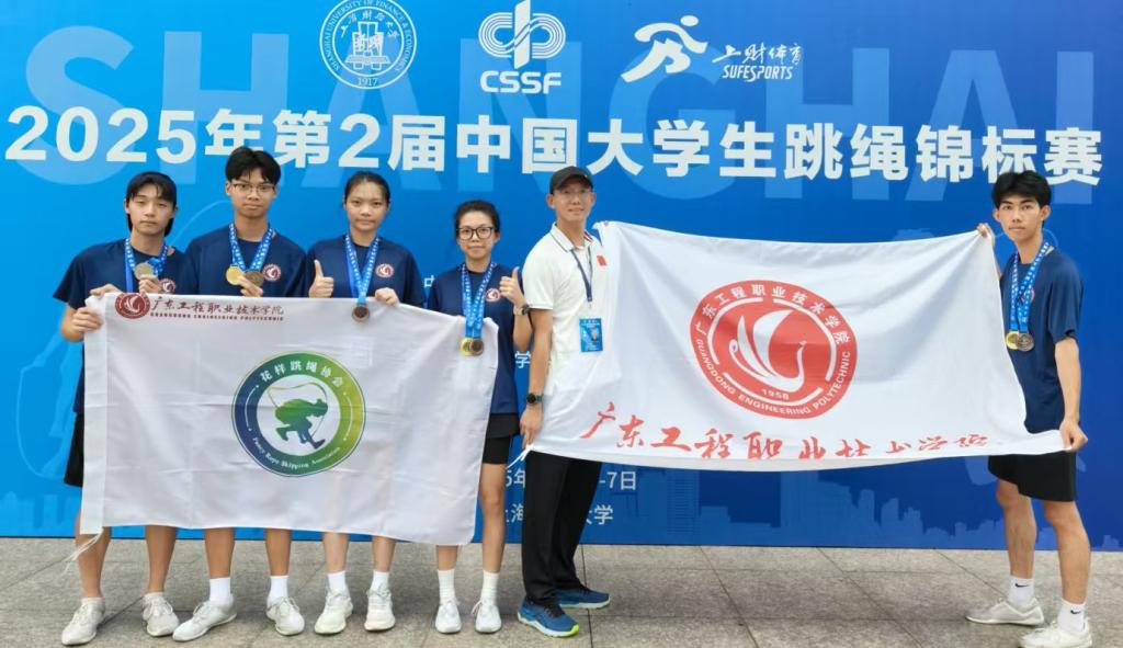 在剛剛落幕的2025年第2屆中國大學生跳繩錦標賽上,我校花樣跳繩協(xié)會奮勇拼搏,再創(chuàng)佳績,共斬獲1金1銀3銅,并奪得兩個第4名、一個第5名、第6名和第8名的優(yōu)異成績,為學校爭得了國家級榮譽,展現(xiàn)了廣東工程學子昂揚向上的精神風貌和卓越的體育競技水平。