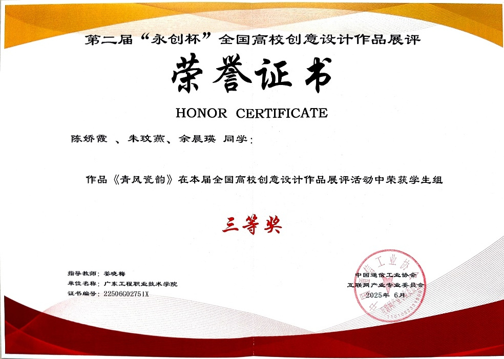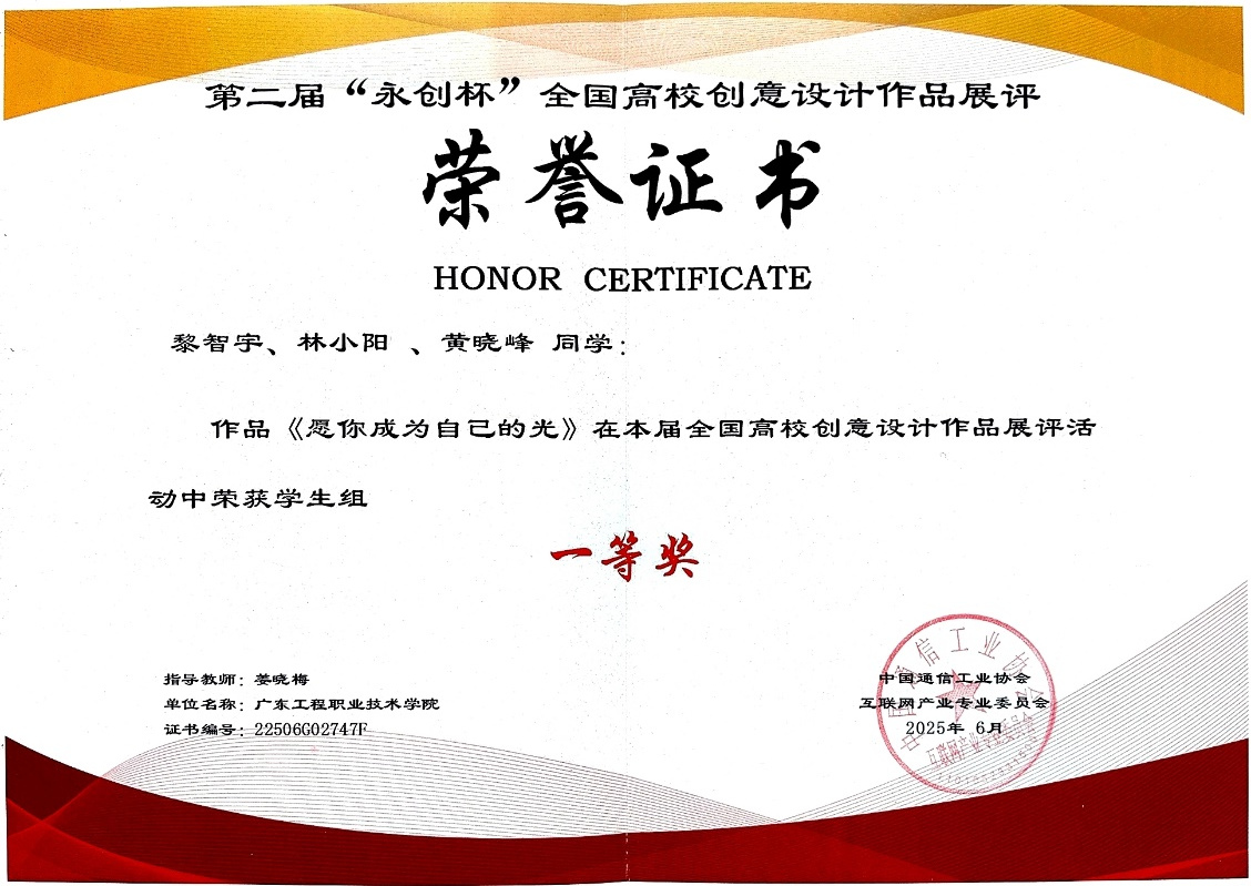 藝術(shù)設(shè)計學(xué)院將持續(xù)鼓勵師生參與高水平專業(yè)競賽,進(jìn)一步推動教學(xué)內(nèi)容與行業(yè)需求深度融合,強(qiáng)化學(xué)生的創(chuàng)新思維與實(shí)踐能力,力爭在更廣闊的舞臺上展現(xiàn)粵工程藝術(shù)學(xué)子的風(fēng)采,為設(shè)計行業(yè)輸送更多具有前沿理念與國際視野的優(yōu)秀人才。