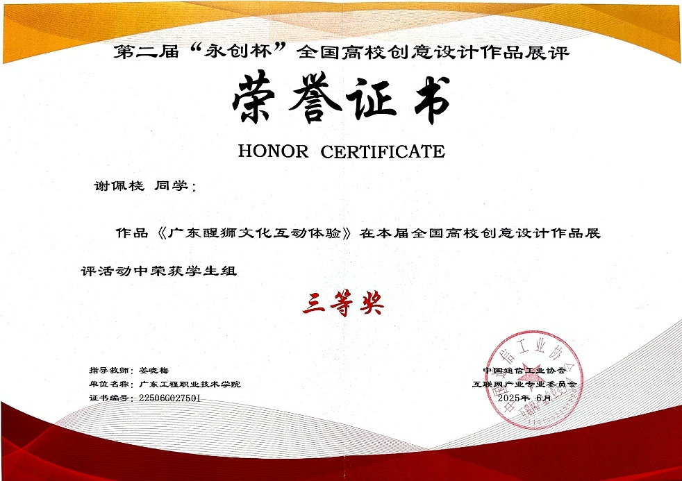 近日,由中國通信工業(yè)協(xié)會互聯(lián)網(wǎng)產(chǎn)業(yè)專業(yè)委員會與永創(chuàng)杯全國高校創(chuàng)意設(shè)計作品展評組委會聯(lián)合舉辦的第二屆“永創(chuàng)杯”全國高校創(chuàng)意設(shè)計作品展評活動圓滿落幕。藝術(shù)設(shè)計學(xué)院虛擬現(xiàn)實(shí)專業(yè)師生憑借出色的創(chuàng)意設(shè)計與專業(yè)能力,在眾多參賽隊(duì)伍中脫穎而出,共獲2項(xiàng)一等獎、2項(xiàng)二等獎、2項(xiàng)三等獎的優(yōu)異成績,姜曉梅老師榮獲“優(yōu)秀指導(dǎo)教師”稱號。