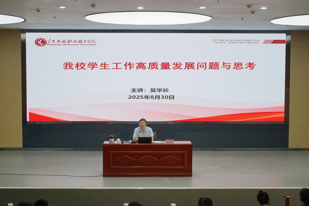 為深入貫徹落實(shí)"新時(shí)代立德樹人工程"戰(zhàn)略部署,全面提升輔導(dǎo)員隊(duì)伍專業(yè)化水平,8月29日至30日,學(xué)生工作部成功舉辦2025年"學(xué)以善工"輔導(dǎo)員素質(zhì)能力提升培訓(xùn)班。本次培訓(xùn)采用沉浸式學(xué)習(xí)模式,張永強(qiáng)副校長(zhǎng)出席開班儀式并作動(dòng)員講話,二級(jí)學(xué)院黨委副書記、全體輔導(dǎo)員及學(xué)工部成員共計(jì)100余人參加研修。