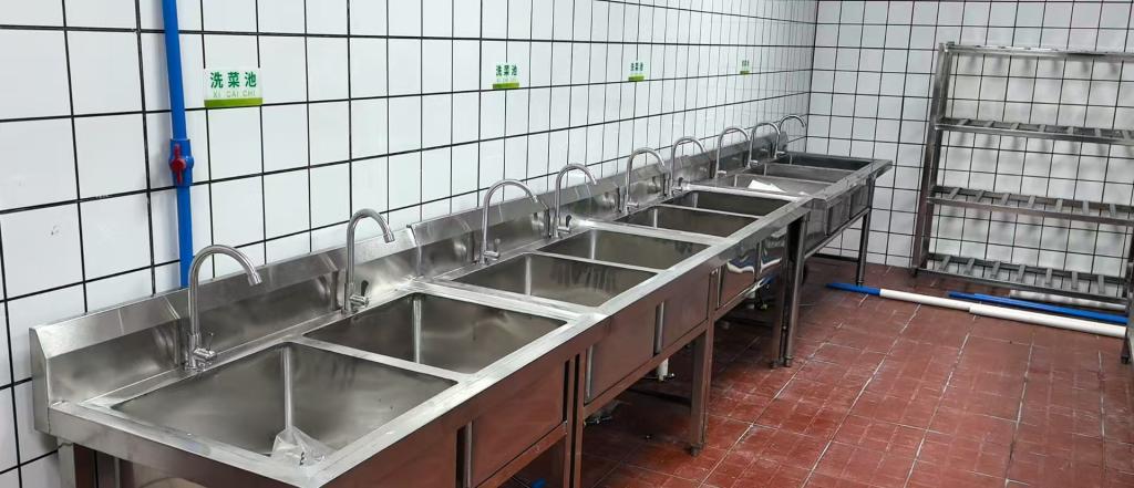 廣州校區(qū)食堂對(duì)后廚、大廳、加工區(qū)進(jìn)行全面升級(jí)改造,一二樓粗加工區(qū)地板、墻面、設(shè)備設(shè)施全面更換、更新,所有排水溝新安裝,保證排水通暢。就餐大廳區(qū)域重新規(guī)劃調(diào)整,增加烘焙,特色小吃,風(fēng)味美食窗口。