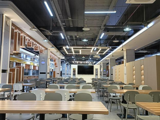 清遠(yuǎn)第二食堂假期完成全面裝修,此次裝修改造突破飯?zhí)脗鹘y(tǒng)功能,打造集餐飲、學(xué)習(xí)、文化體驗(yàn)于一體,新增書吧區(qū)、學(xué)習(xí)交流區(qū)、舞臺(tái)區(qū)、卡座區(qū)等,成為師生課余休閑的熱門打卡地,讓校園生活更有溫度!