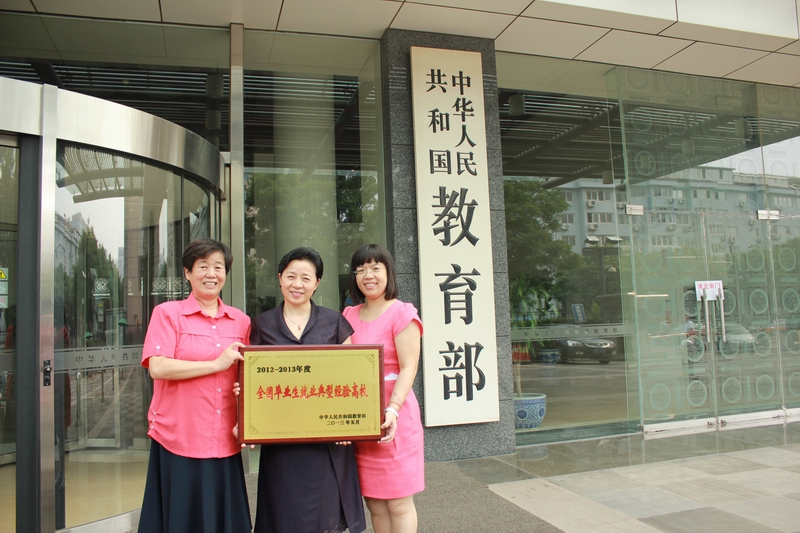■廣東工程職業(yè)技術(shù)學(xué)院黨委書記劉文清(中)參加全國畢業(yè)生就業(yè)典型經(jīng)驗高校座談會并領(lǐng)獎。