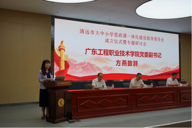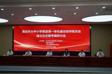“鼓勵各地高校積極開展與中小學(xué)思政課共建,共同推動大中小學(xué)思政課一體化建設(shè)”。2022年7月8日,清遠(yuǎn)市大中小學(xué)思政課一體化建設(shè)指導(dǎo)委員會成立儀式暨專題研討會在廣東省職業(yè)教育城廣東工程職業(yè)技術(shù)學(xué)院校區(qū)舉行,來自不同學(xué)段不同類型的專家學(xué)者、教研員、名師和骨干教師齊聚一堂,共同為大中小學(xué)思政課一體化建設(shè)建言獻(xiàn)策。該活動由清遠(yuǎn)市教育局、廣東工程職業(yè)技術(shù)學(xué)院馬克思主義學(xué)院和廣東省高校思想政治理論課方燕名師工作室聯(lián)合舉辦。清遠(yuǎn)市教育局領(lǐng)導(dǎo),清遠(yuǎn)市大中小學(xué)思政課一體化建設(shè)指導(dǎo)委員會委員、專家指導(dǎo)組成員,廣東工程職業(yè)技術(shù)學(xué)院學(xué)校領(lǐng)導(dǎo)、清遠(yuǎn)市不同學(xué)段不同類型教師代表參加了本次活動。