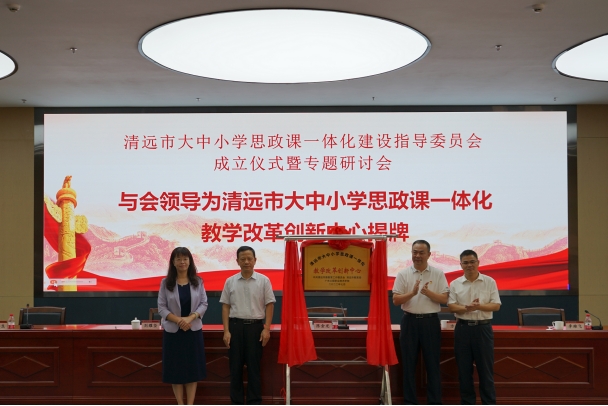 在成立儀式上,清遠(yuǎn)市教育局領(lǐng)導(dǎo)和廣東工程職業(yè)技術(shù)學(xué)院領(lǐng)導(dǎo)共同為建設(shè)指導(dǎo)委員會委員、專家頒發(fā)聘書,與會領(lǐng)導(dǎo)、專家共同為清遠(yuǎn)市大中小學(xué)思政課一體化教學(xué)改革創(chuàng)新中心揭牌。清遠(yuǎn)市教育局副局長劉耀堅(jiān)對新成立的大中小學(xué)思政課一體化建設(shè)指導(dǎo)委員會和大中小學(xué)思政課一體化教學(xué)改革創(chuàng)新中心寄予厚望,希望這個一體化建設(shè)平臺,今后能統(tǒng)籌指導(dǎo)各部門、各學(xué)校,貫徹落實(shí)黨中央關(guān)于大中小學(xué)思政課一體化建設(shè)的有關(guān)決策部署,完成前瞻研究、評估指導(dǎo)、工作研討、經(jīng)驗(yàn)總結(jié)、問題研判、培訓(xùn)推廣等工作任務(wù),發(fā)揮清遠(yuǎn)市思政課改革創(chuàng)新的決策協(xié)調(diào)議事功能。