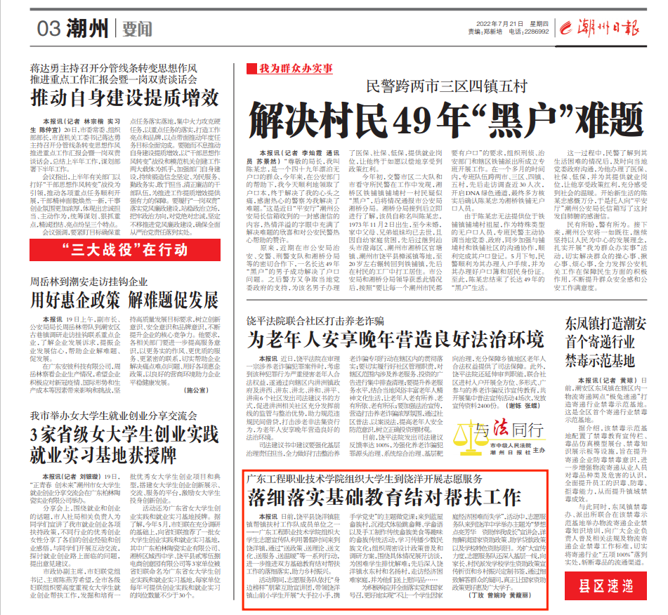 廣東工程職業(yè)技術(shù)學(xué)院組織大學(xué)生到饒洋開展志愿服務(wù)