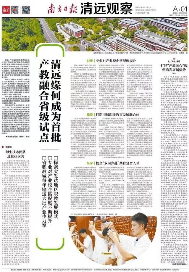 ——打造產(chǎn)教融合創(chuàng)新平臺(tái)和實(shí)訓(xùn)基地,培育具有示范作用、特色鮮明的產(chǎn)教融合型企業(yè),服務(wù)地方產(chǎn)教融合城市建設(shè)和區(qū)域產(chǎn)業(yè)轉(zhuǎn)型升級(jí),立足清遠(yuǎn),面向大灣區(qū),形成職業(yè)教育產(chǎn)教融合的清遠(yuǎn)模式。