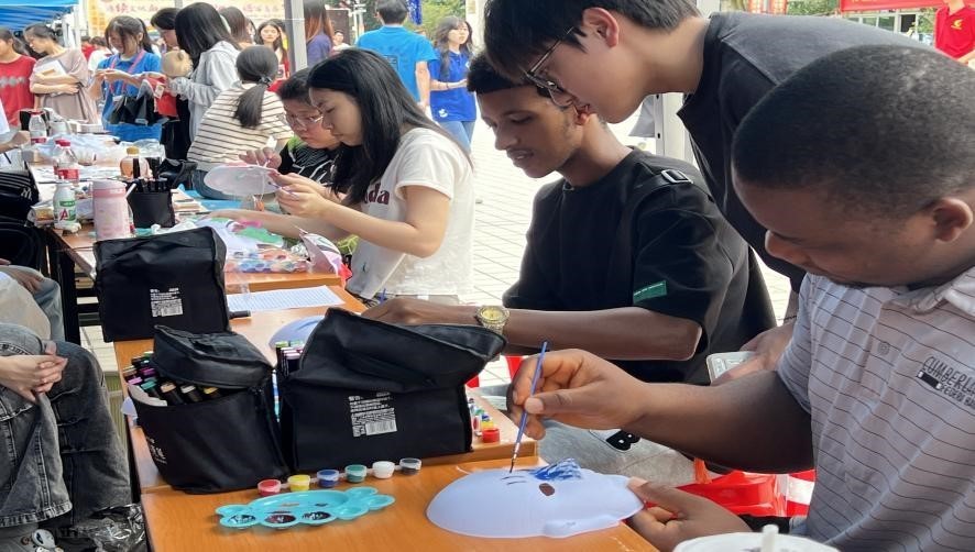 活動現(xiàn)場設(shè)有英歌舞、漢服展示、書畫創(chuàng)作、篆刻藝術(shù)、臉譜繪畫等共十七個項目,通過“靜態(tài)陳列展示”+“動態(tài)手工體驗”+“英歌舞表演”相結(jié)合的方式,讓非遺文化煥發(fā)出新的活力并融入日常校園生活。
