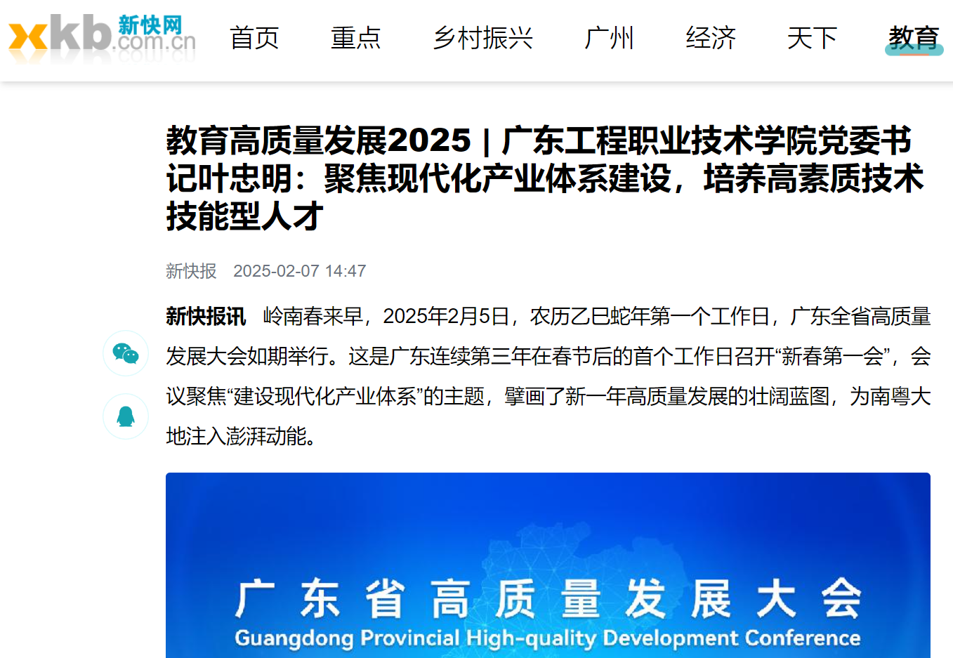 “一年之計(jì)在于春。全省高質(zhì)量發(fā)展大會(huì)吹響了奮進(jìn)的號(hào)角,為廣東省高質(zhì)量發(fā)展注入了強(qiáng)大動(dòng)力,令人振奮,倍受鼓舞。”廣東工程職業(yè)技術(shù)學(xué)院黨委書(shū)記葉忠明表示,學(xué)校堅(jiān)持為黨育人、為國(guó)育才,落實(shí)立德樹(shù)人根本任務(wù),聚焦現(xiàn)代化產(chǎn)業(yè)體系建設(shè),主動(dòng)服務(wù)、精準(zhǔn)對(duì)接國(guó)家戰(zhàn)略和粵港澳大灣區(qū)發(fā)展需求,在深化改革創(chuàng)新中激發(fā)辦學(xué)活力,全力回答好“時(shí)代所問(wèn) 國(guó)家所需 學(xué)校何為”時(shí)代課題,在廣東高質(zhì)量發(fā)展版圖中做出貢獻(xiàn)。
