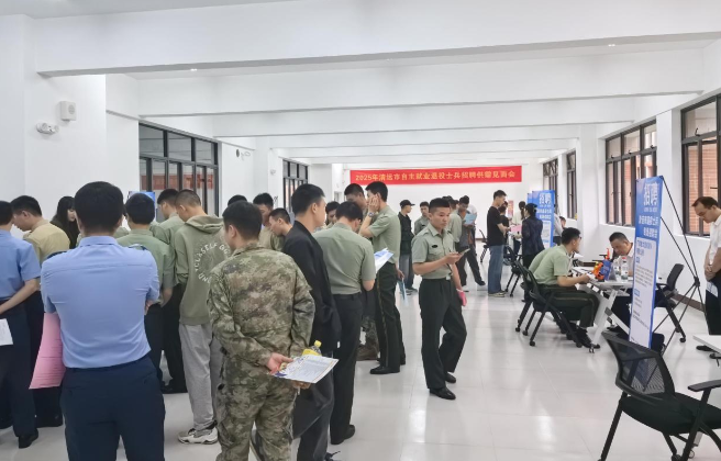 培訓(xùn)精準(zhǔn)賦能 提升就業(yè)核心競(jìng)爭(zhēng)力 聚焦地方經(jīng)濟(jì)發(fā)展新常態(tài)與退役軍人特點(diǎn),培訓(xùn)緊貼退役軍人服務(wù)保障工作實(shí)際,采用“理論+實(shí)操”與“訂單式+定制化”相結(jié)合模式,開設(shè)《DeepSeek應(yīng)用技能》《短視頻制作》等培訓(xùn)課程,提升退役軍人就業(yè)核心競(jìng)爭(zhēng)力。通過政策專題教學(xué)、組織參觀創(chuàng)業(yè)基地、邀請(qǐng)退役軍人企業(yè)家分享經(jīng)驗(yàn)等方式,激發(fā)退役軍人創(chuàng)新創(chuàng)業(yè)創(chuàng)造的活力,激勵(lì)他們積極投身于“百千萬工程”與鄉(xiāng)村振興建設(shè)中,為清遠(yuǎn)高質(zhì)量發(fā)展貢獻(xiàn)退役軍人的智慧和力量。 政校企齊發(fā)力 拓寬就業(yè)創(chuàng)業(yè)渠道 培訓(xùn)期間,組織兩場(chǎng)退役軍人專場(chǎng)招聘會(huì),邀請(qǐng)清遠(yuǎn)市公安局特警支隊(duì)、中國(guó)人壽清遠(yuǎn)分公司等優(yōu)質(zhì)企事業(yè)單位參加,提供涵蓋智能制造、應(yīng)急救援、城市服務(wù)等領(lǐng)域的就業(yè)崗位,為退役軍人搭建起從“戰(zhàn)場(chǎng)”到“職場(chǎng)”的精準(zhǔn)對(duì)接橋梁。招聘會(huì)現(xiàn)場(chǎng)設(shè)置退役軍人服務(wù)專臺(tái),由市退役軍人服務(wù)中心工作人員為退役軍人提供政策解讀、職業(yè)規(guī)劃指導(dǎo)、問題答疑等“一站式”就業(yè)咨詢服務(wù),幫助退役軍人明晰就業(yè)方向、找準(zhǔn)職業(yè)定位。兩場(chǎng)招聘會(huì)共吸引151名退役軍人參加,73人與用人單位達(dá)成就業(yè)意向。