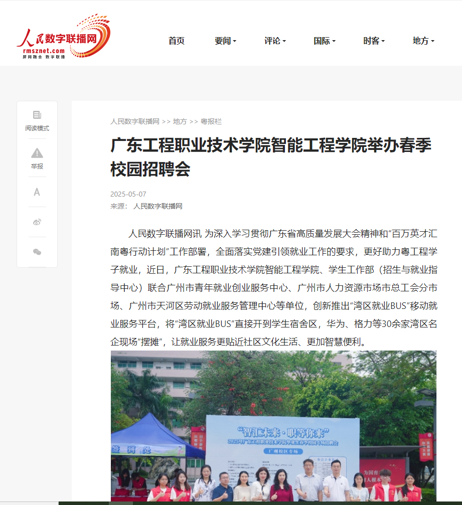 人民數(shù)字聯(lián)播網(wǎng)訊 為深入學(xué)習(xí)貫徹廣東省高質(zhì)量發(fā)展大會精神和“百萬英才匯南粵行動計(jì)劃”工作部署,全面落實(shí)黨建引領(lǐng)就業(yè)工作的要求,更好助力粵工程學(xué)子就業(yè),近日,廣東工程職業(yè)技術(shù)學(xué)院智能工程學(xué)院、學(xué)生工作部(招生與就業(yè)指導(dǎo)中心)聯(lián)合廣州市青年就業(yè)創(chuàng)業(yè)服務(wù)中心、廣州市人力資源市場市總工會分市場、廣州市天河區(qū)勞動就業(yè)服務(wù)管理中心等單位,創(chuàng)新推出“灣區(qū)就業(yè)BUS”移動就業(yè)服務(wù)平臺,將“灣區(qū)就業(yè)BUS”直接開到學(xué)生宿舍區(qū),華為、格力等30余家灣區(qū)名企現(xiàn)場“擺攤”,讓就業(yè)服務(wù)更貼近社區(qū)文化生活、更加智慧便利。