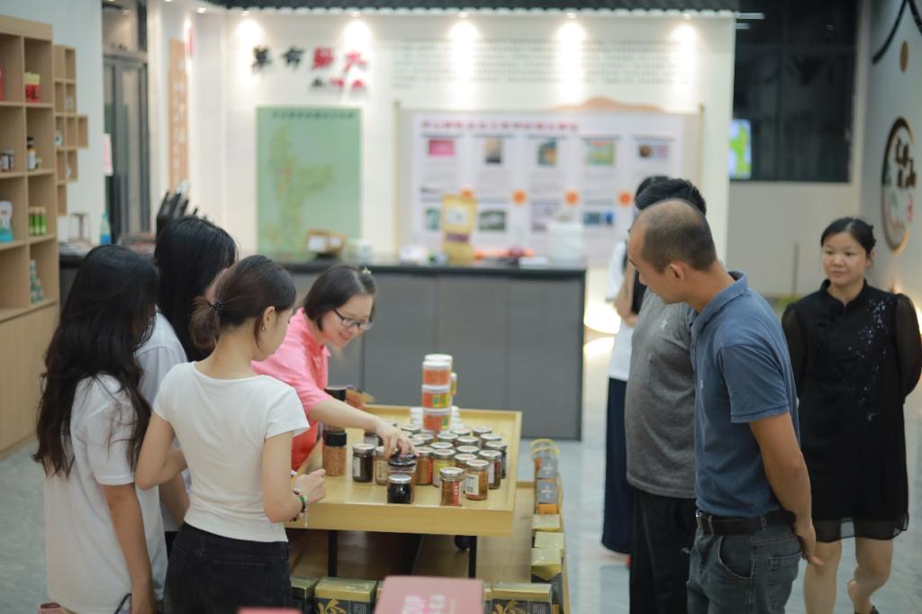 目前圩鎮(zhèn)客廳還作為浮山電商產(chǎn)業(yè)園區(qū),集電商運營、產(chǎn)品展示、直播帶貨等多功能于一體。電商團(tuán)隊與園區(qū)負(fù)責(zé)人進(jìn)行了深入座談,系統(tǒng)調(diào)研行業(yè)發(fā)展現(xiàn)狀。詳細(xì)了解了圩鎮(zhèn)客廳的發(fā)展歷程、運營模式以及未來規(guī)劃,以及當(dāng)?shù)蒯u料行業(yè)的基本情況與核心。近年來,隨著人們生活水平的提高和對美食的追求,特色醬料市場需求不斷增長,但同時也面臨著品牌知名度不高、銷售渠道有限等問題。這些寶貴的“一線聲音”,讓大學(xué)生們對鄉(xiāng)村振興背景下特色產(chǎn)業(yè)如何尋找破局之道有了更深刻的思考。