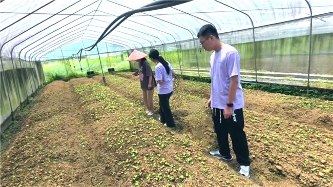 晨曦微露,團(tuán)隊一行抵達(dá)黃泥塘生態(tài)農(nóng)場。在農(nóng)場技術(shù)員的引導(dǎo)下,隊員們步入生機盎然的田間地頭,近距離觀察瓜藤纏繞、白菜青翠、辣椒火紅的生長景象。技術(shù)員耐心講解各類蔬菜的種植要點與生長特性,隊員們認(rèn)真聆聽,不時提問,對現(xiàn)代農(nóng)業(yè)生態(tài)有了直觀而深刻的認(rèn)識。