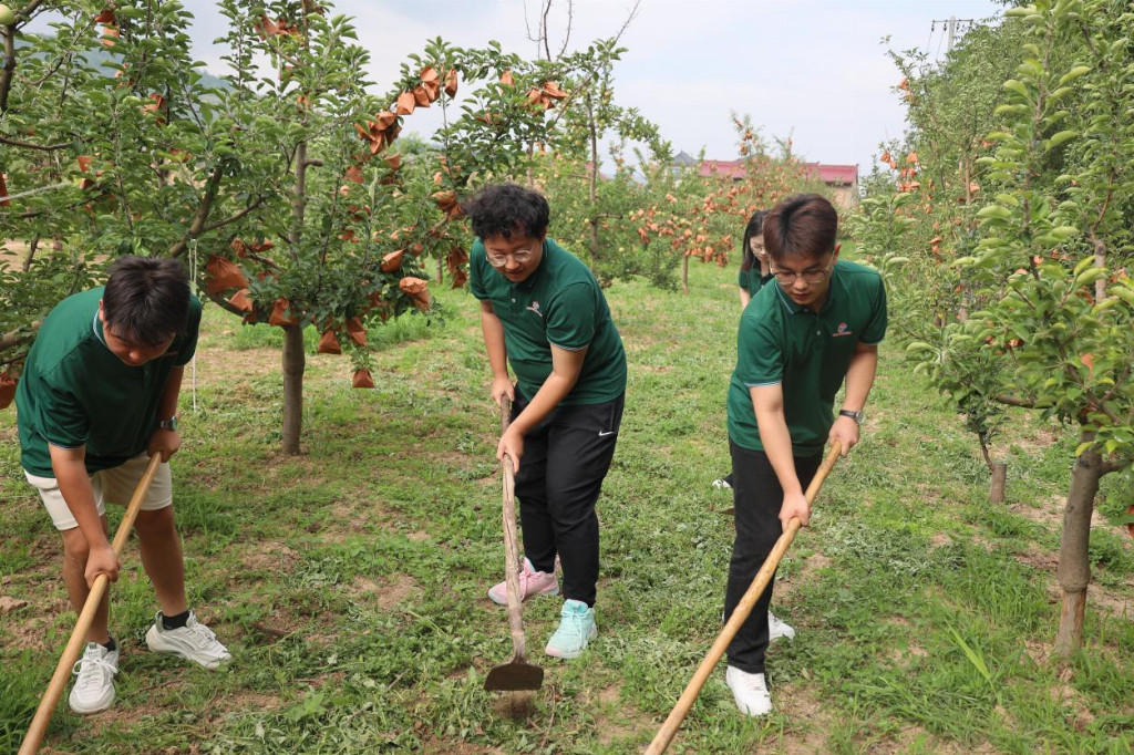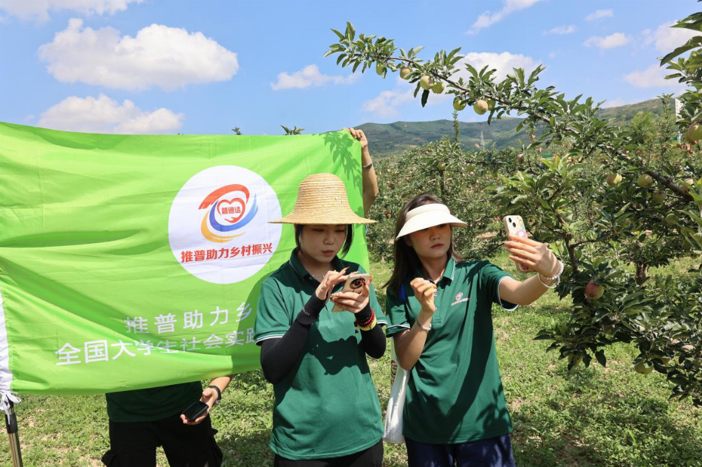 為積極響應(yīng)中央一號文件“發(fā)展鄉(xiāng)村特色產(chǎn)業(yè),拓寬農(nóng)民增收渠道”的部署要求,團(tuán)隊將推普工作與電商助農(nóng)深度融合,為禮縣特色產(chǎn)業(yè)的發(fā)展注入了新的活力。在蘋果園直播帶貨,用標(biāo)準(zhǔn)普通話介紹“隴上蘋果”優(yōu)勢與生態(tài)模式,拓寬銷售渠道。隊員還參與田間勞作,積極參與除草勞作。這種“實踐 + 推廣”的創(chuàng)新模式,既完美踐行了《鄉(xiāng)村振興戰(zhàn)略規(guī)劃》中“強(qiáng)化農(nóng)民技能培訓(xùn)”的要求,又讓推普工作成為了產(chǎn)業(yè)發(fā)展的“催化劑”。