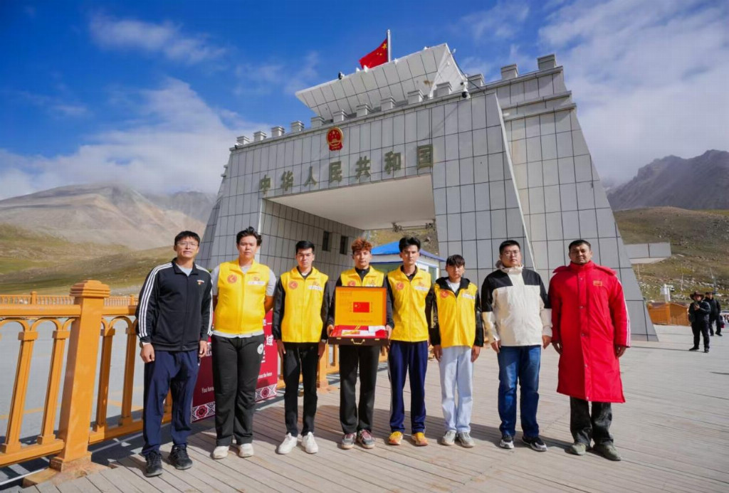 在紅其拉甫口岸,當鮮艷的五星紅旗冉冉升起之時,隊員們捧著從天安門廣場帶回的國旗與國門同框,兩面紅旗在帕米爾高原的藍天下同框,定格下“家國同心”的動人瞬間。
