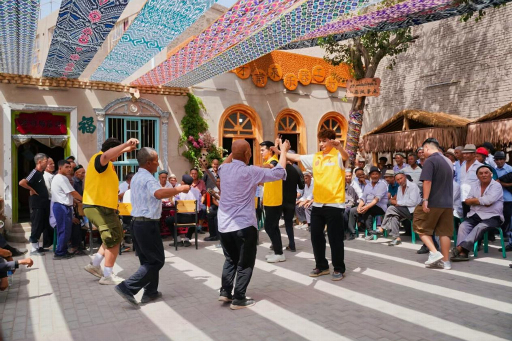 在疏勒縣牙甫泉鎮(zhèn),文化的交融與活力撲面而來。老街花巷里,木卡姆的悠揚旋律、阿肯彈唱的即興豪情,讓隊員們沉醉于中華優(yōu)秀傳統(tǒng)文化的絢麗多姿。